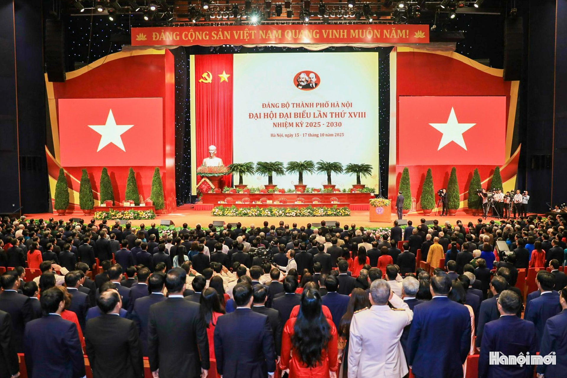 Quang cảnh lễ khai mạc Đại hội đại biểu Đảng bộ thành phố Hà Nội lần thứ XVIII, nhiệm kỳ 2025-2030.