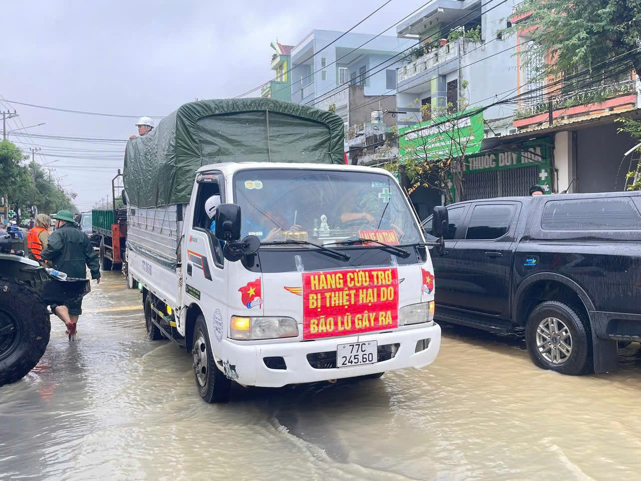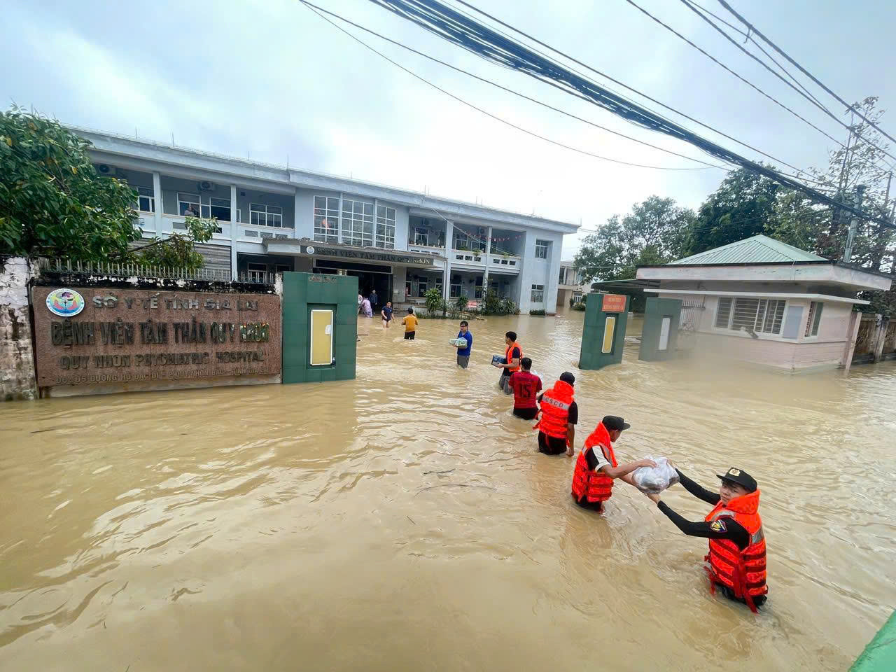 Tại những vùng ngập nặng, hàng trăm cán bộ, chiến sĩ công an, quân đội bất chấp mưa gió, liên tục dùng ca nô, xe tải lớn vận chuyển nhu yếu phẩm đến Bệnh viện Tâm thần Quy Nhơn, Bệnh viện Lao và Bệnh phổi Quy Nhơn cùng các khu dân cư bị cô lập.