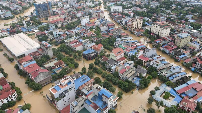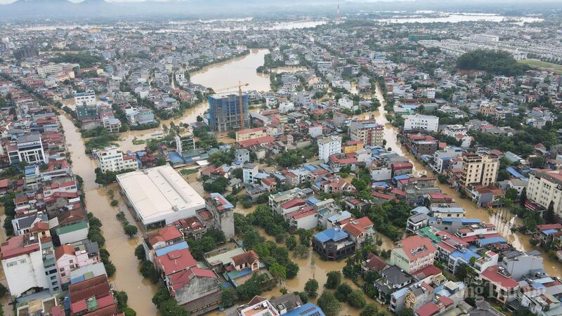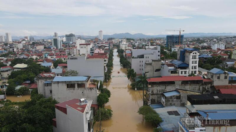 Toàn cảnh thành phố Thái Nguyên chìm trong biển nước trong sáng 8/10.