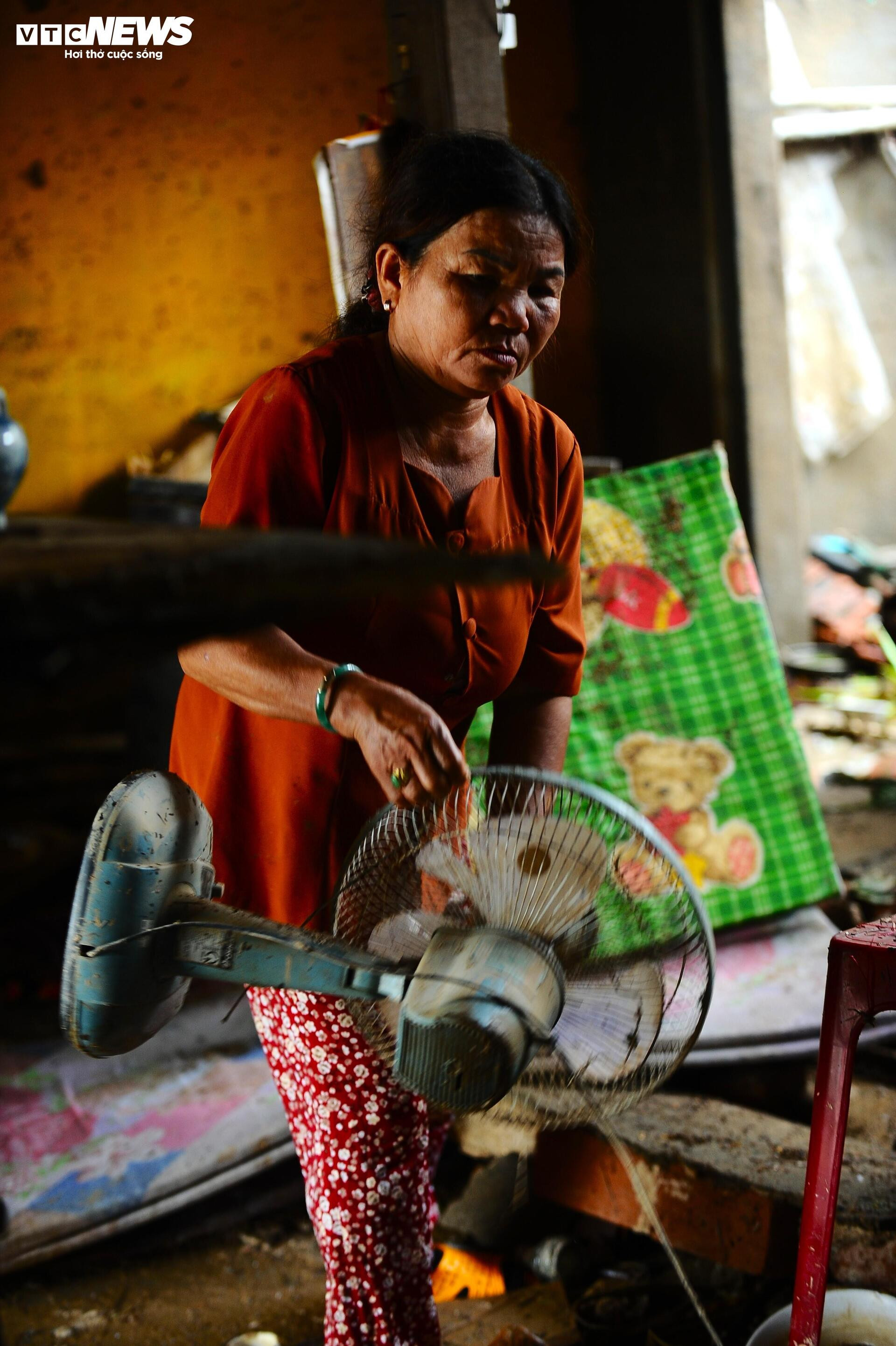 Bà Lê Thị Xuân Thu (58 tuổi, con dâu ông Minh) tìm nhặt lại những vật dụng còn sót trong nhà.