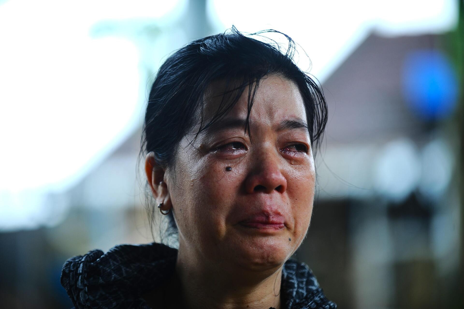 Người phụ nữ khóc đến cạn khô nước mắt vì trận lũ lụt kinh hoàng vừa qua.