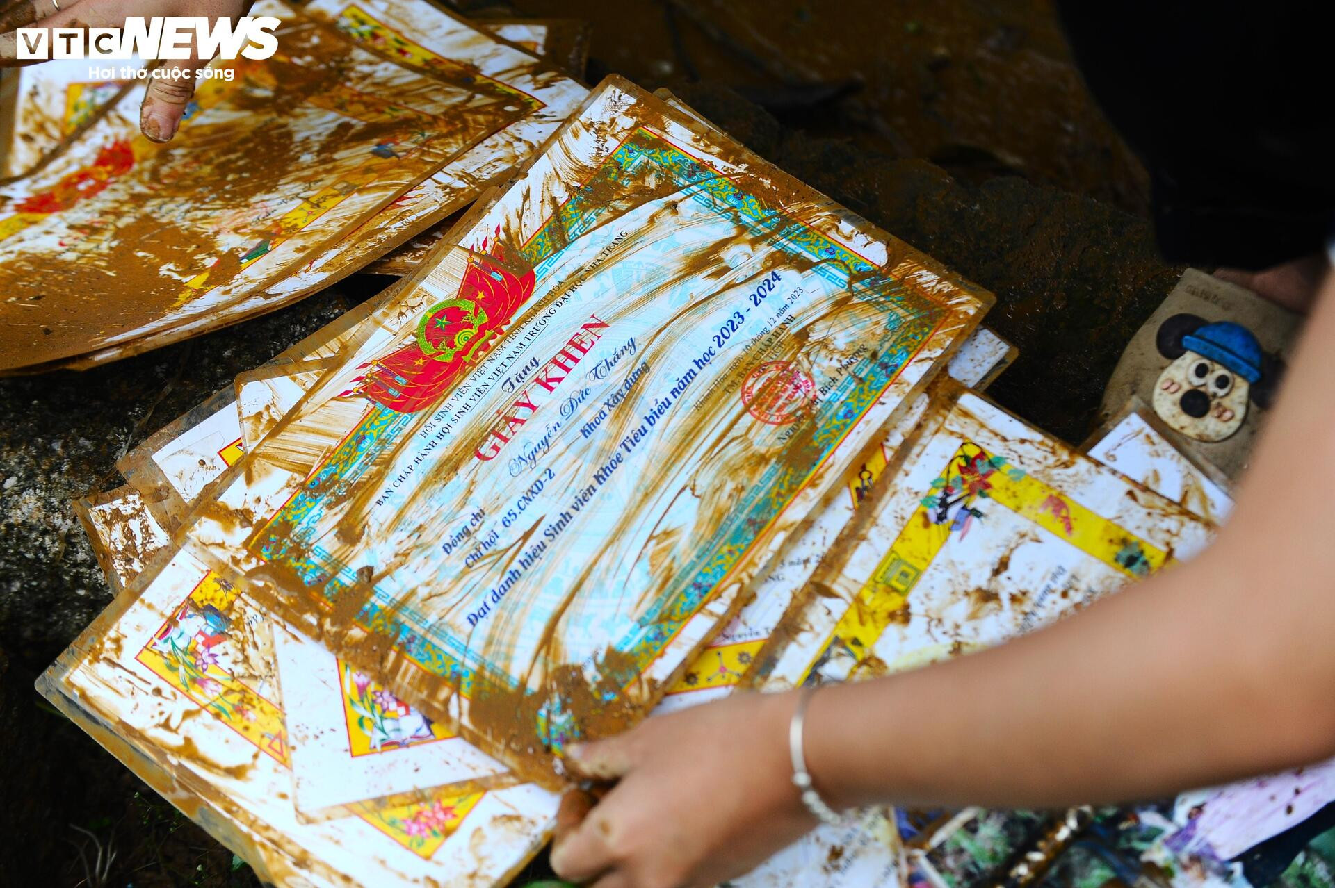 Kỷ vật còn sót lại của một gia đình trong đống bùn lầy.