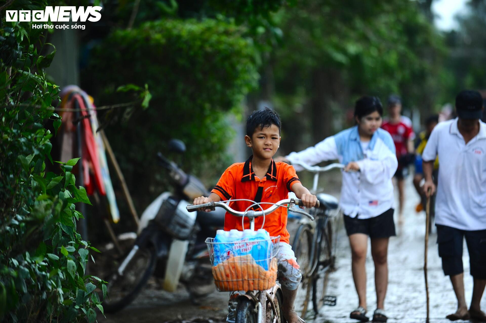 Những đứa trẻ ngây thơ không khỏi bàng hoàng sau trận lũ.