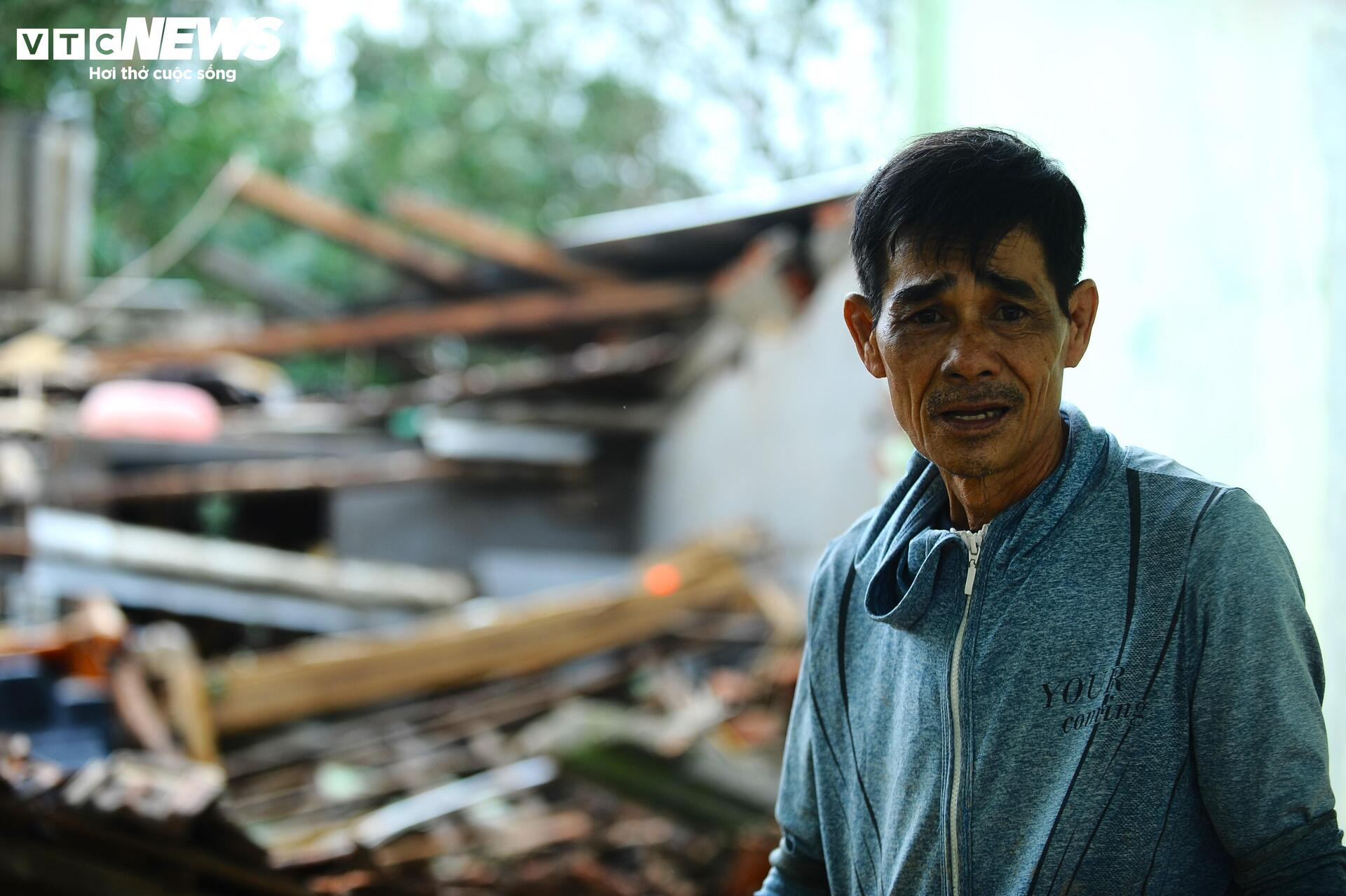 Ông thất thần vì nhà cửa tan hoang.