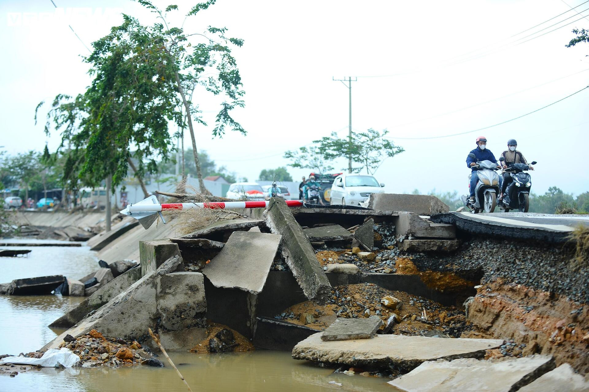 Đường sá tan tành, vỡ nát khắp nơi.
