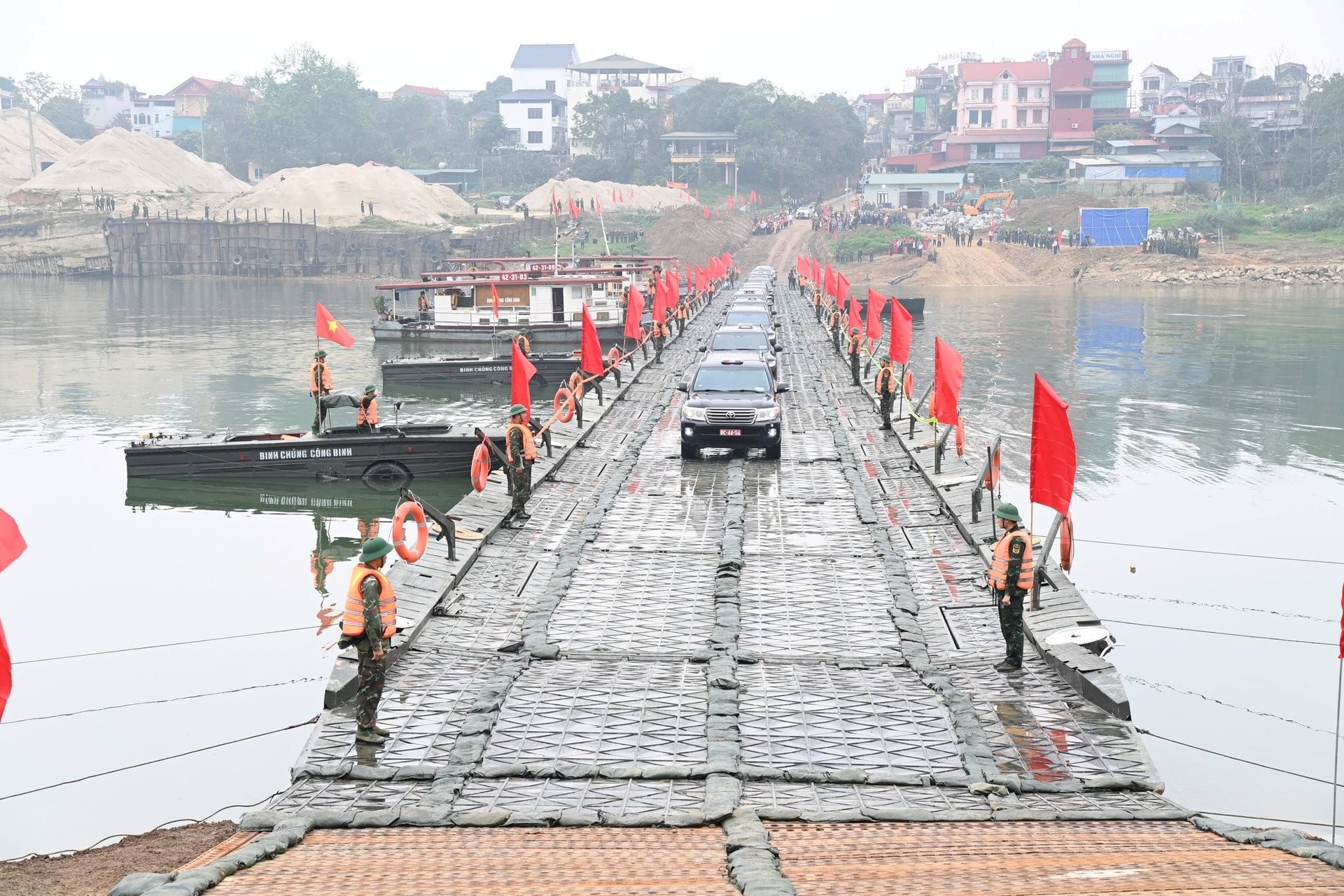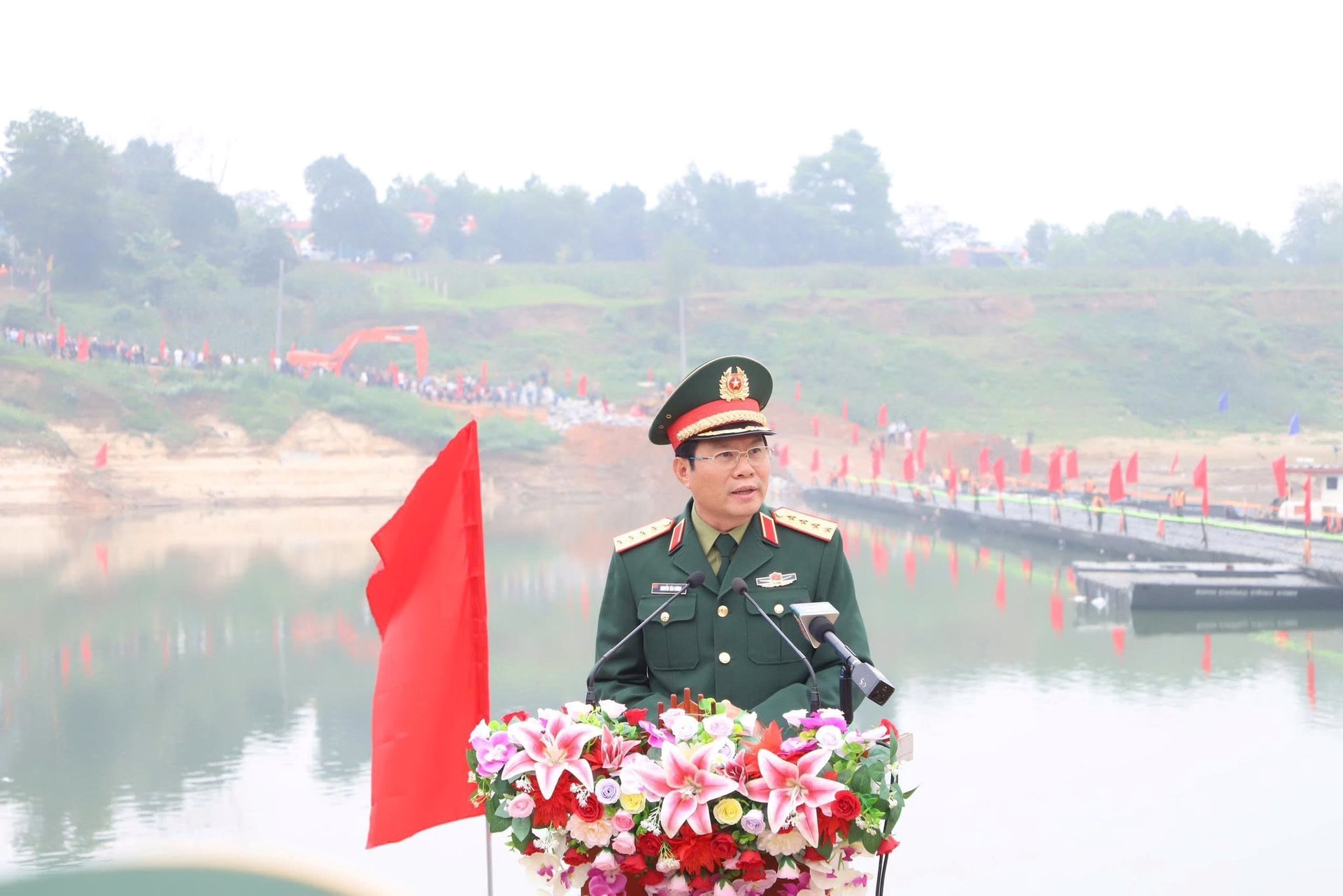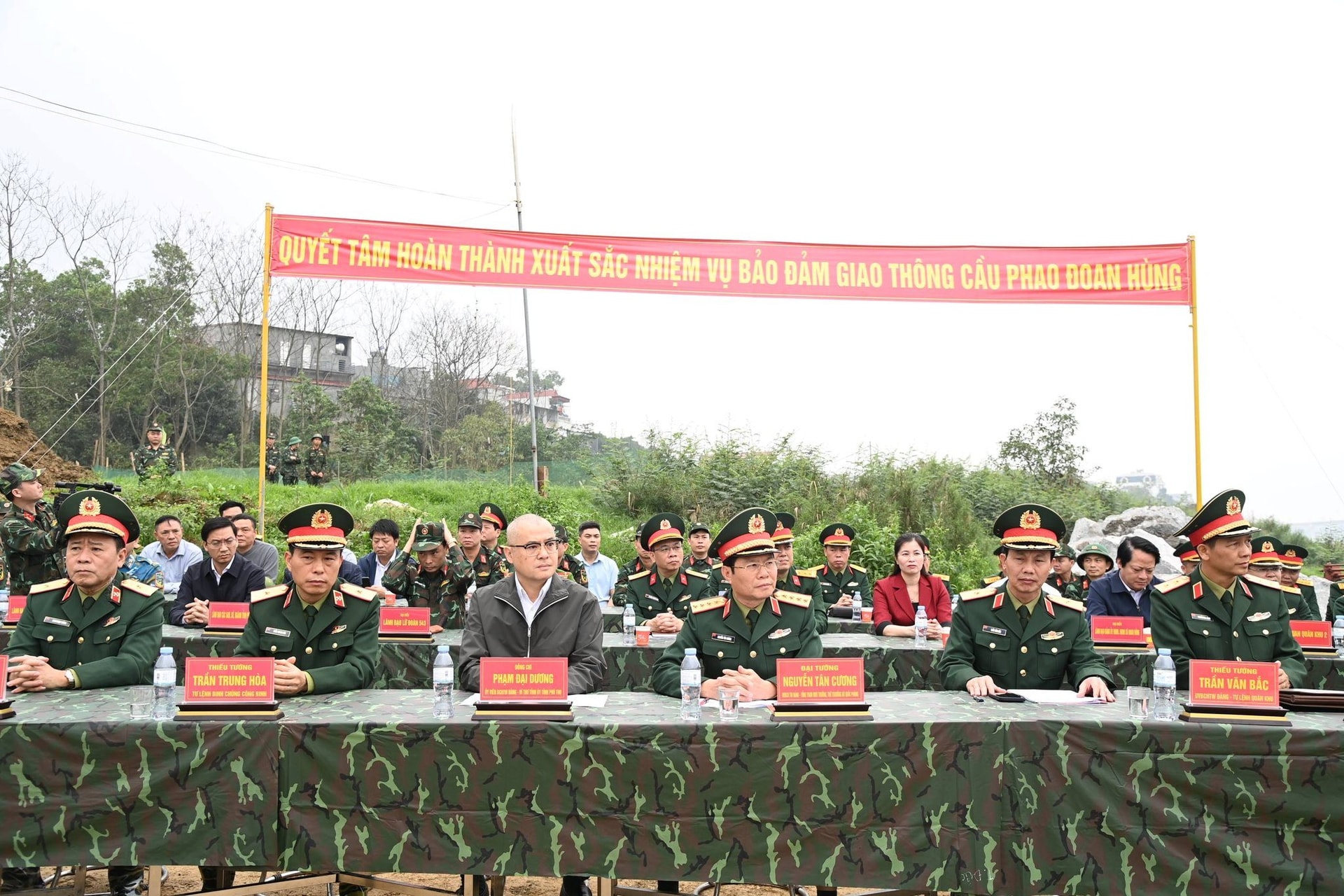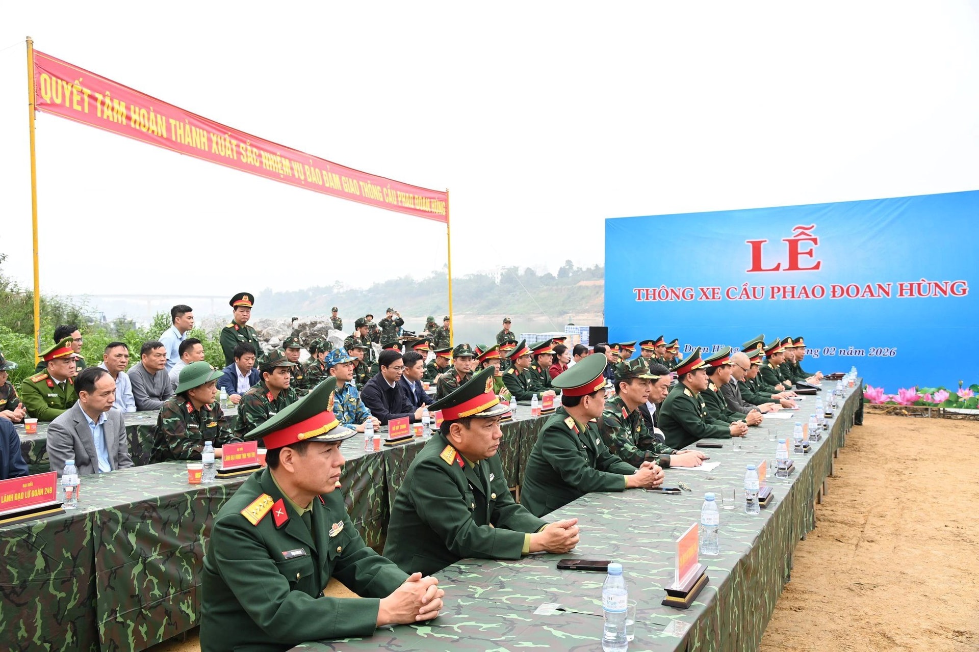 Phát biểu tại buổi lễ thông xe, Đại tướng Nguyễn Tân Cương – Tổng Tham mưu trưởng Quân đội nhân dân Việt Nam, Thứ trưởng Bộ Quốc phòng nhấn mạnh, việc thông cầu phao không chỉ mang ý nghĩa bảo đảm giao thông đơn thuần mà còn thể hiện rõ tinh thần trách nhiệm, sự gắn bó quân – dân trong thời điểm cấp bách.