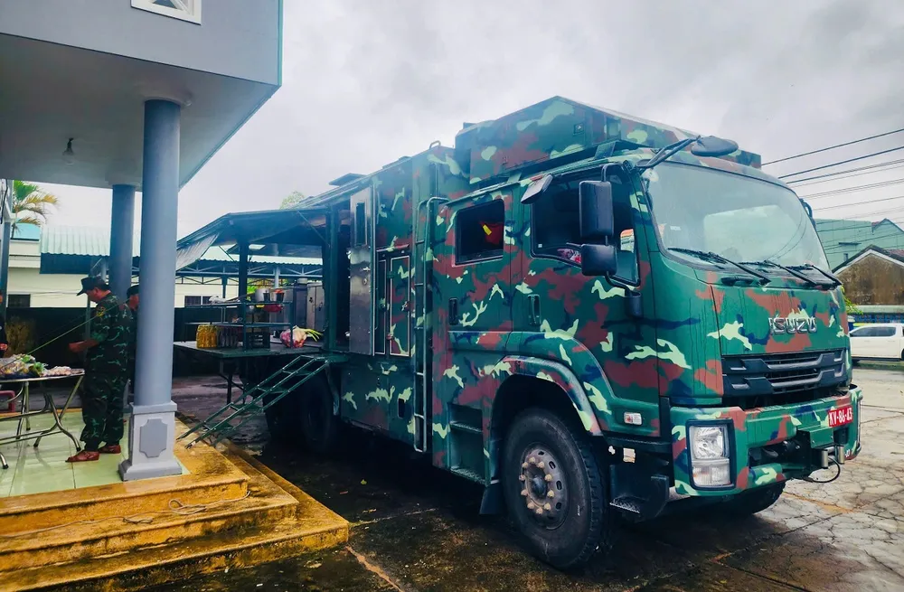 Điều ít ai biết, chiếc xe bếp đang đỏ lửa mỗi ngày giữa vùng lũ là sản phẩm nghiên cứu cấp Bộ Quốc phòng từ năm 2016. Xe có khả năng nấu cho 200-250 người ăn mỗi lần, tiết kiệm chất đốt, cơ động trên nhiều địa hình, hoạt động ổn định trong mưa gió và vốn được thiết kế phục vụ dã ngoại, tác chiến.