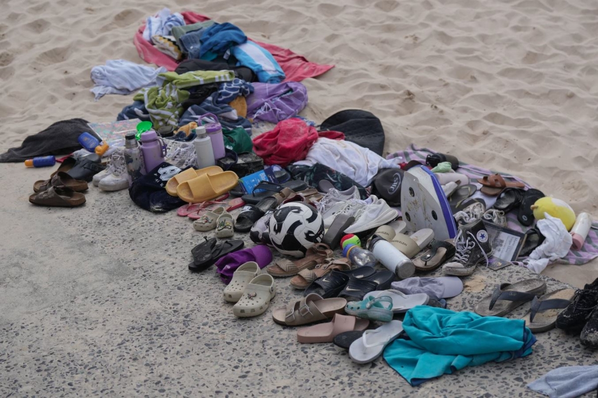 Đồ đạc chất đống sau vụ xả súng ở bãi biển Bondi một ngày trước đó.