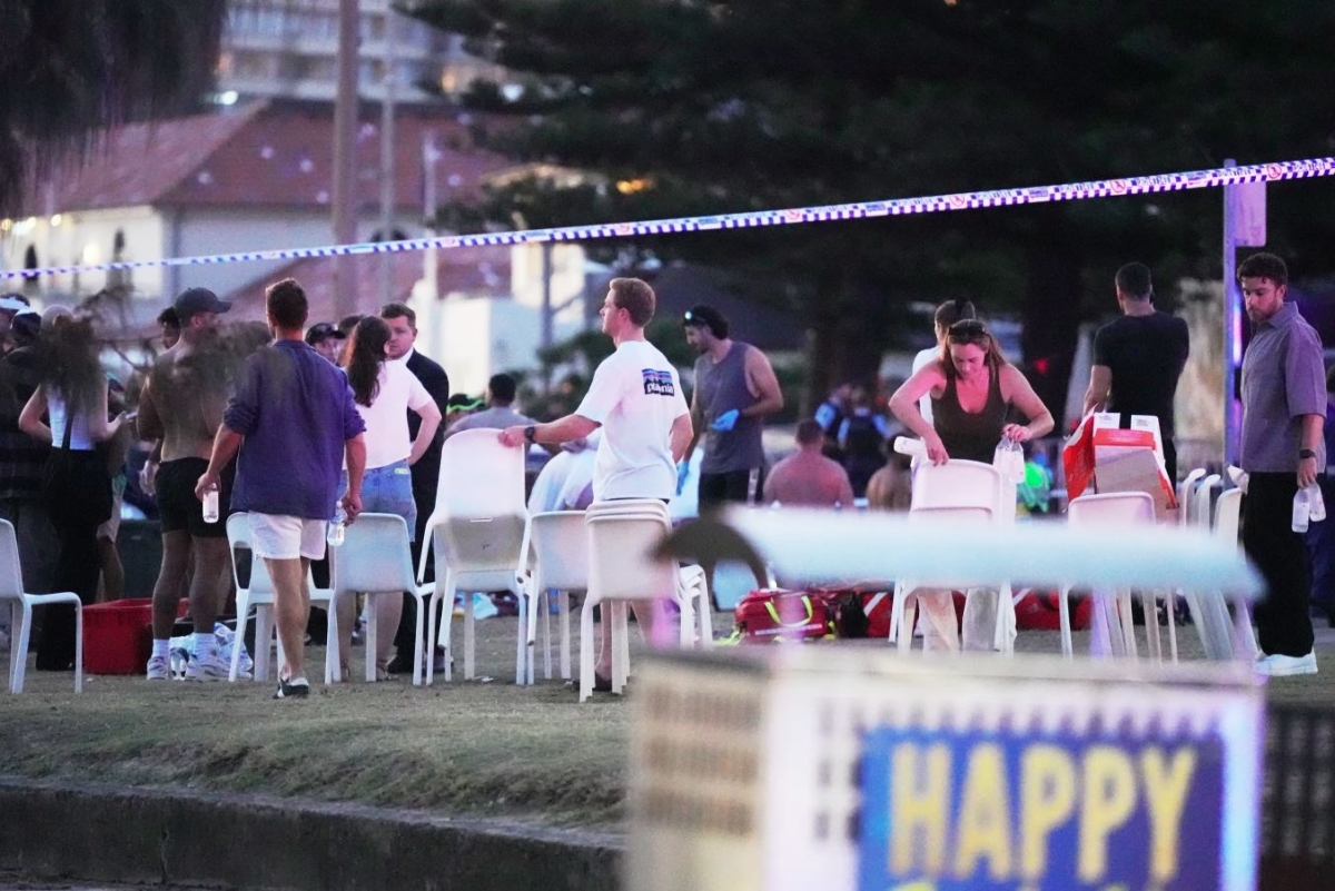 Người dân và nhân viên cứu hộ tập trung tại địa điểm diễn ra một sự kiện lễ hội sau vụ xả súng tại bãi biển Bondi ở Sydney.
