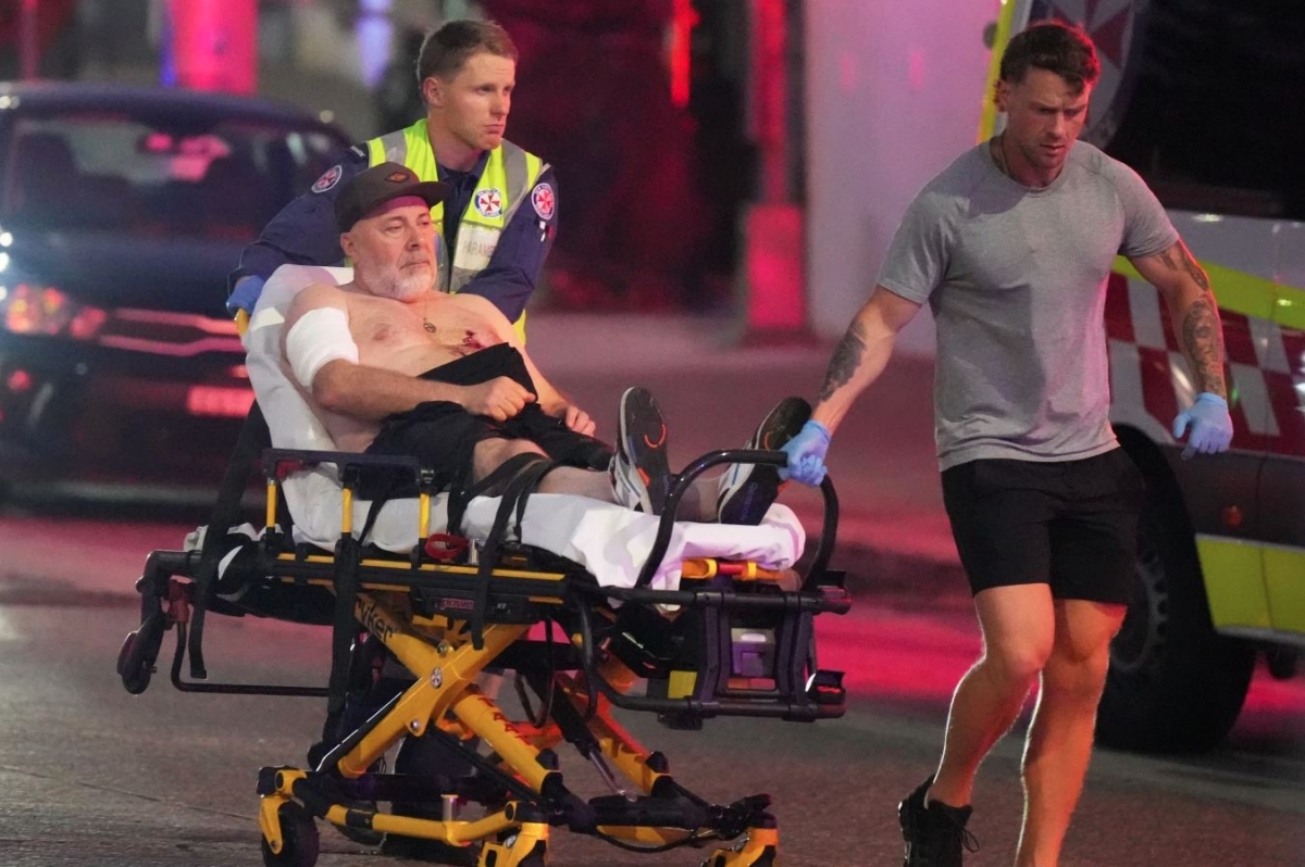 Một người đàn ông bị thương được lực lượng cứu hộ đưa đi bằng cáng. Thủ tướng Australia Anthony Albanese mô tả vụ xả súng ở Bondi là “một vụ khủng bố tàn khốc” và chia sẻ nỗi đau với tất cả những người bị ảnh hưởng.