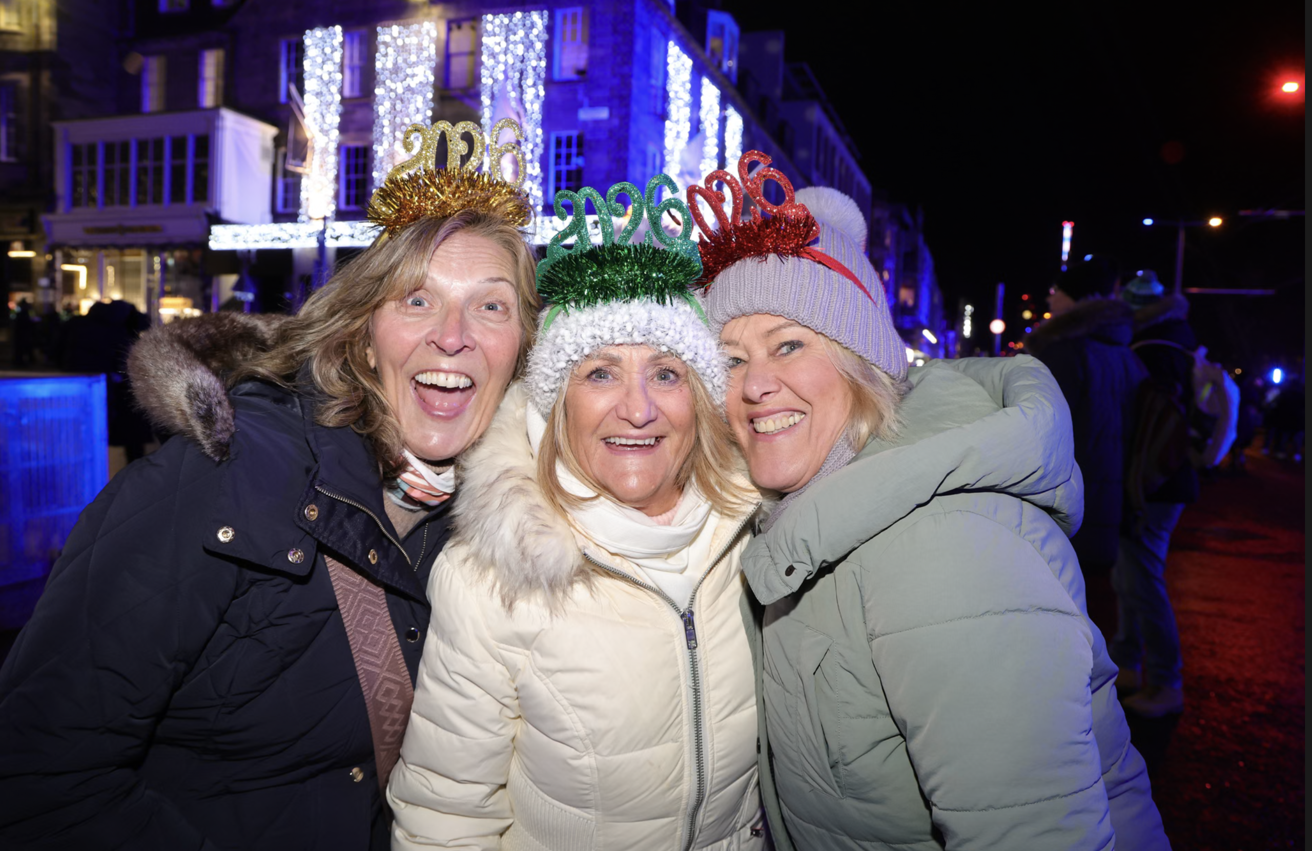 Du khách đến từ Birmingham hòa mình vào không khí lễ hội đón năm mới Hogmanay tại Edinburgh, Scotland. Ảnh: Steve Welsh/PA