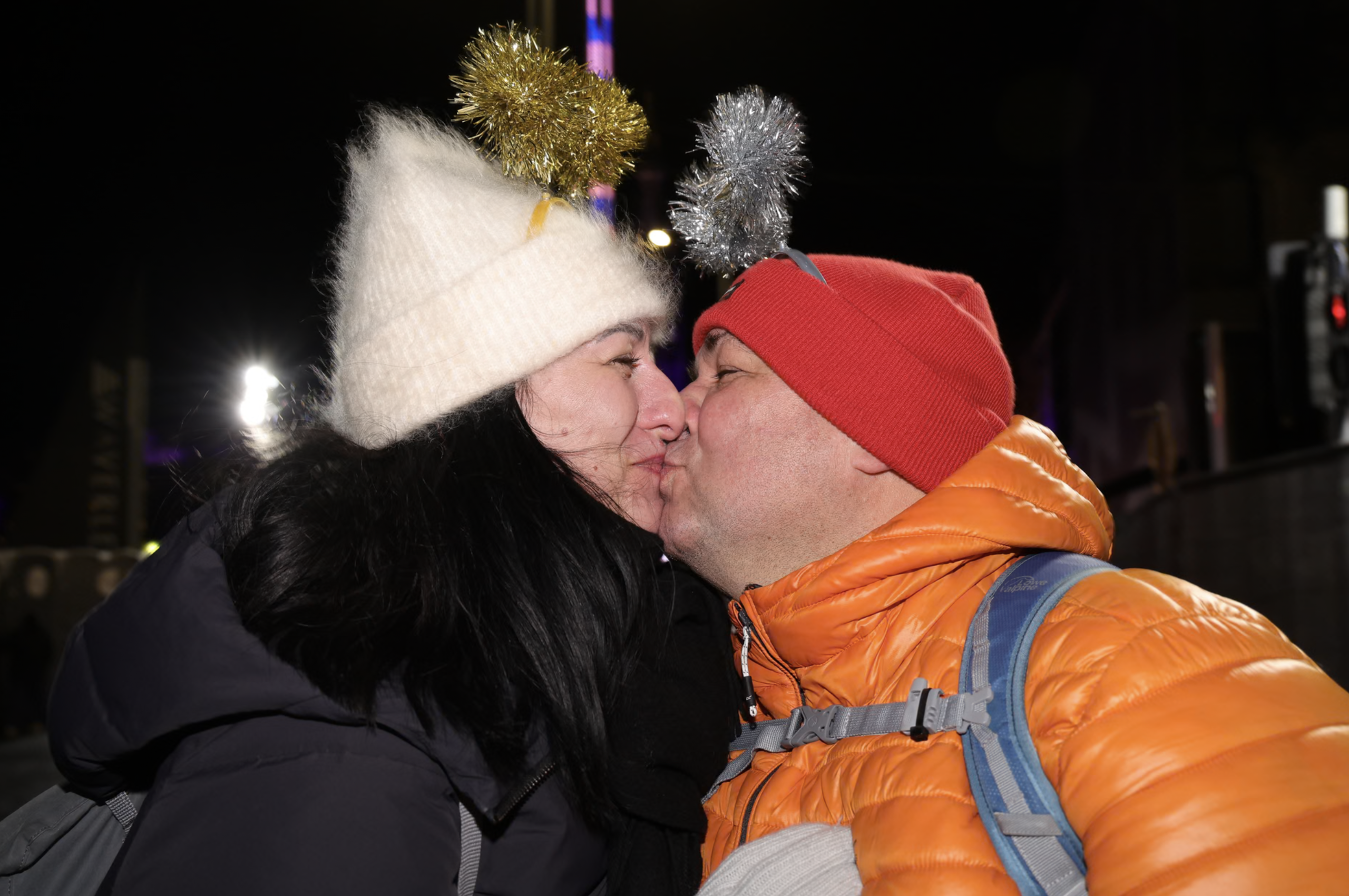 Hai khách du lịch Anna và Andrzej từ Ba Lan có mặt tại Edinburgh tối giao thừa. Ảnh: Steve Welsh/PA