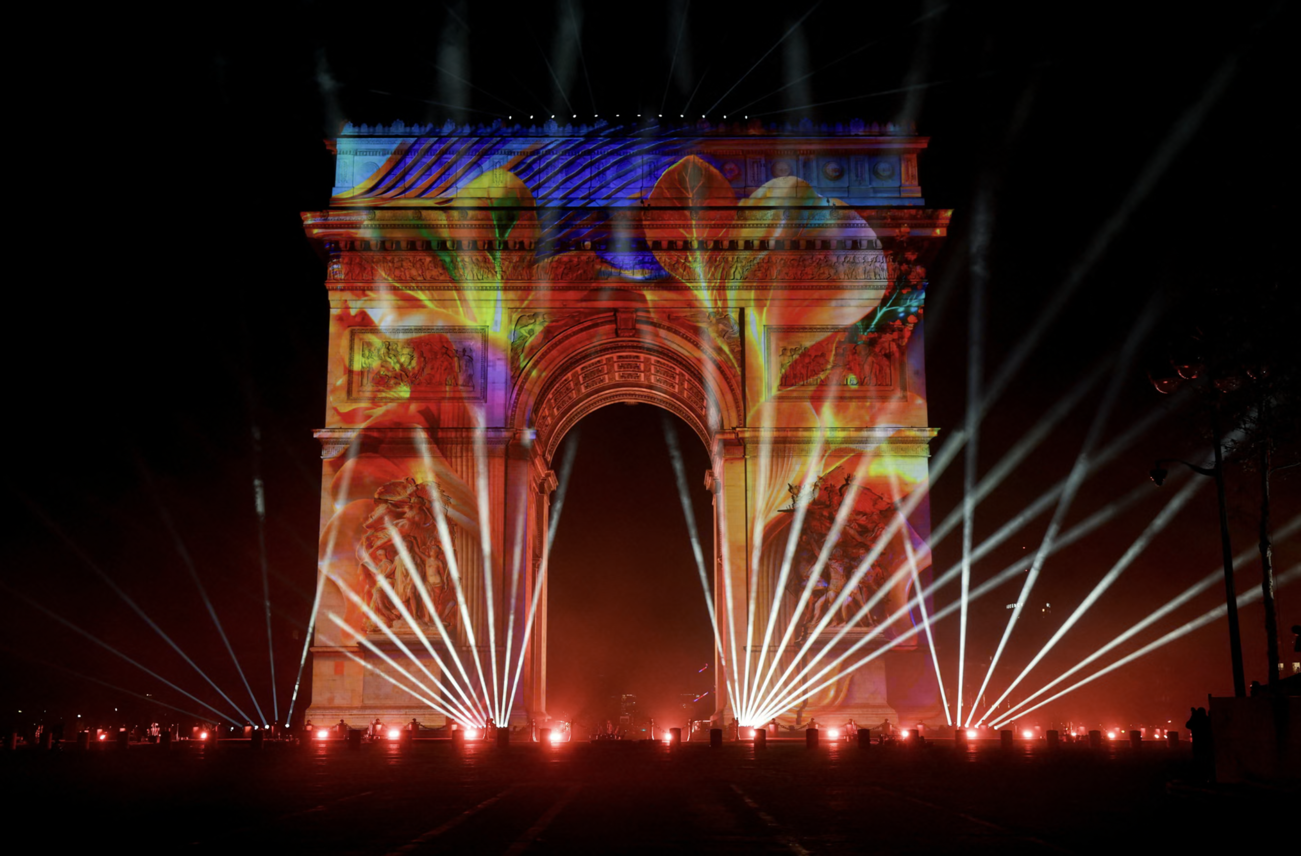 Màn trình diễn ánh sáng và 3D tại Khải Hoàn Môn trong lễ đón năm mới trên đại lộ Champs-Élyseés, Pháp. Ảnh: Stéphanie Lecocq/Reuters