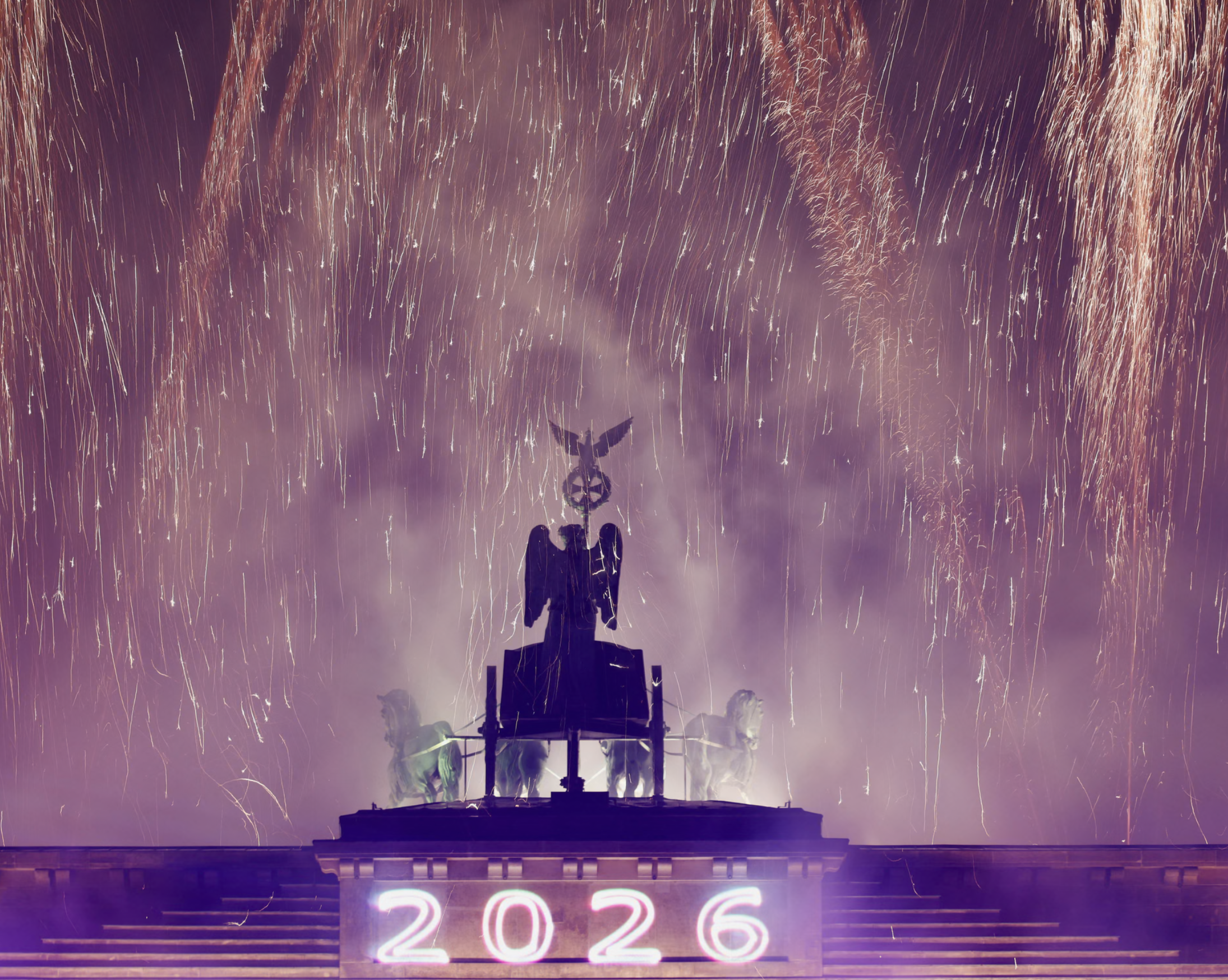 Pháo hoa rực sáng trên Cổng Brandenburg tại Berlin, Đức. Ảnh: Axel Schmidt/Reuters