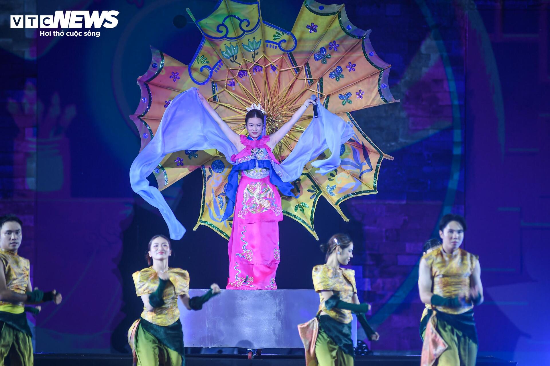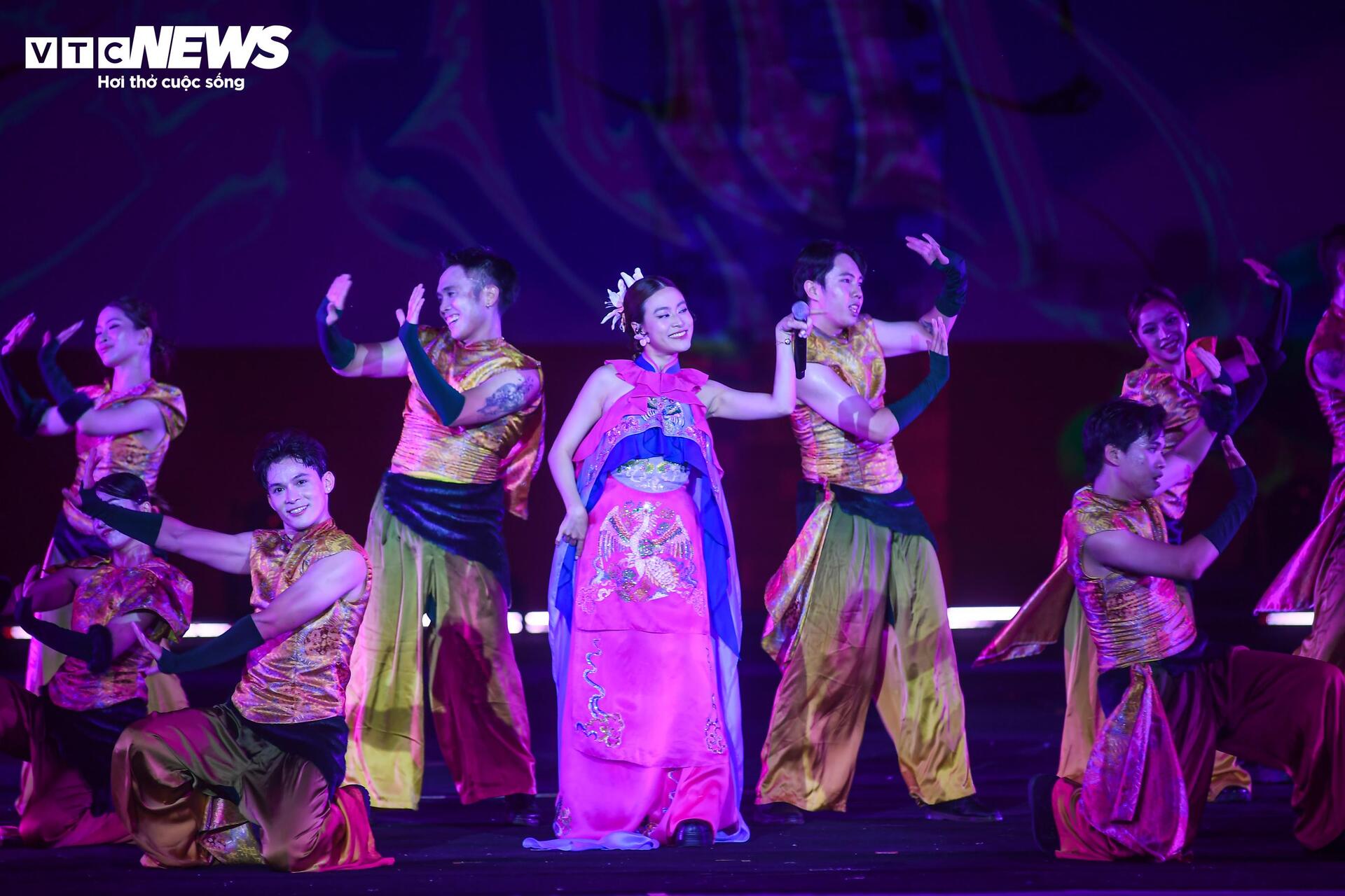 Chặng cuối chương trình, ca sĩ Hoàng Thùy Linh tham gia Lễ bế mạc Lễ hội Văn hóa Thế giới với 2 ca khúc nổi tiếng - "Gieo quẻ" và "See tình".
