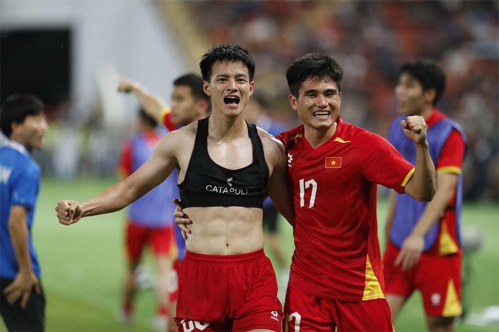 Khi tiếng còi mãn cuộc vang lên, niềm vui vỡ òa trên sân Rajamangala. Khoảnh khắc cảm xúc của những người chiến thắng, nơi những giọt nước mắt hạnh phúc hòa cùng nụ cười rạng rỡ, chất chứa niềm tự hào sau 120 phút chiến đấu đầy quả cảm.