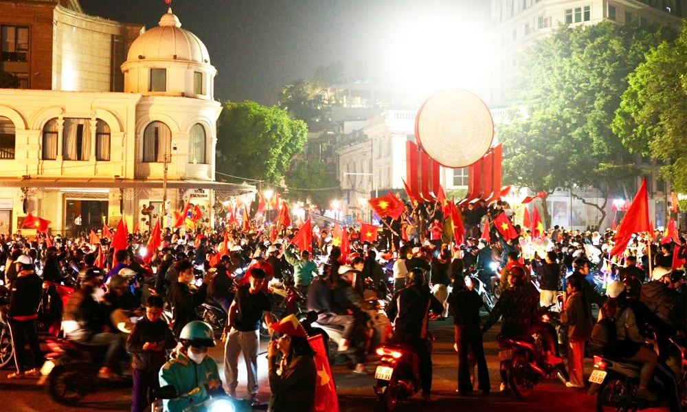 Biển người ra đường mừng chiến thắng ở quê nhà.