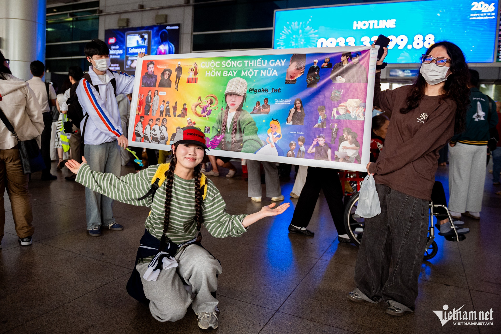 Em Lê Ngọc Trân (24 tuổi) cho biết, gần như không ngủ được từ tối hôm trước. “Chút nữa ra khỏi sân bay là em đi ăn bún bò liền”, Trân cười. Hơn 3 năm mới được về quê ăn Tết, Trân sẽ ở TPHCM đến ngày 27 Tết để gặp gỡ bạn bè rồi về quê ở Đồng Tháp. Cô xúc động khi thấy em trai và bạn thân đến đón, mang theo tấm pano chào mừng đầy bất ngờ.