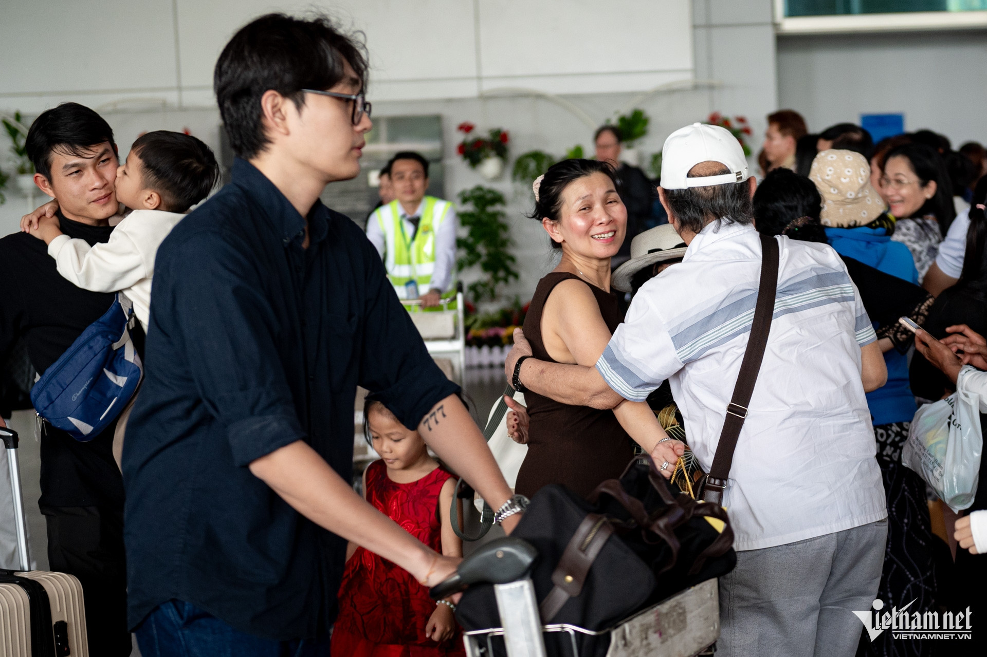Những cái ôm siết chặt, những giọt nước mắt vỡ òa trong vòng tay yêu thương xuất hiện khắp sảnh đến, khi nhiều Việt kiều hiếm hoi mới có dịp trở về Việt Nam đón Tết.