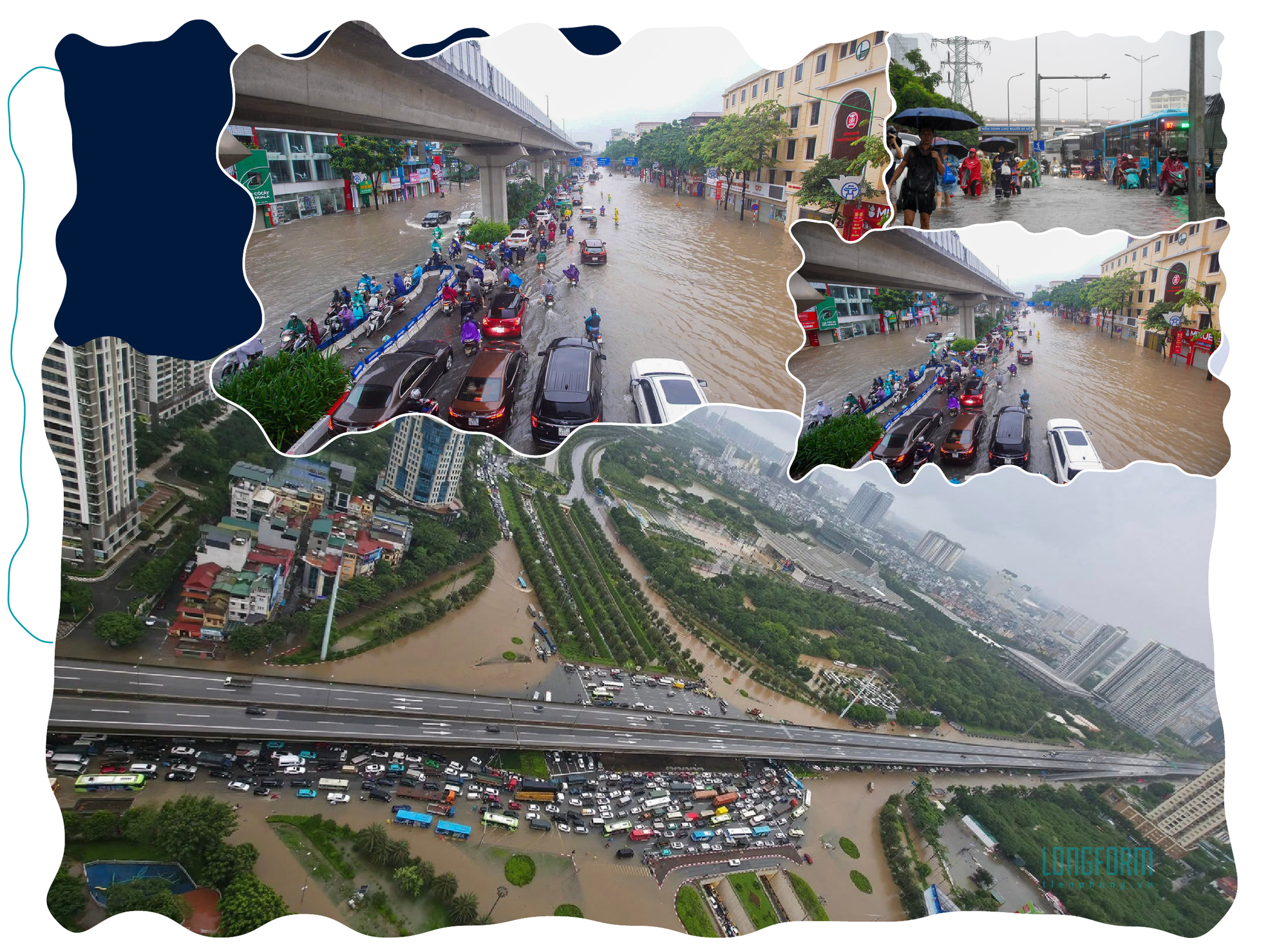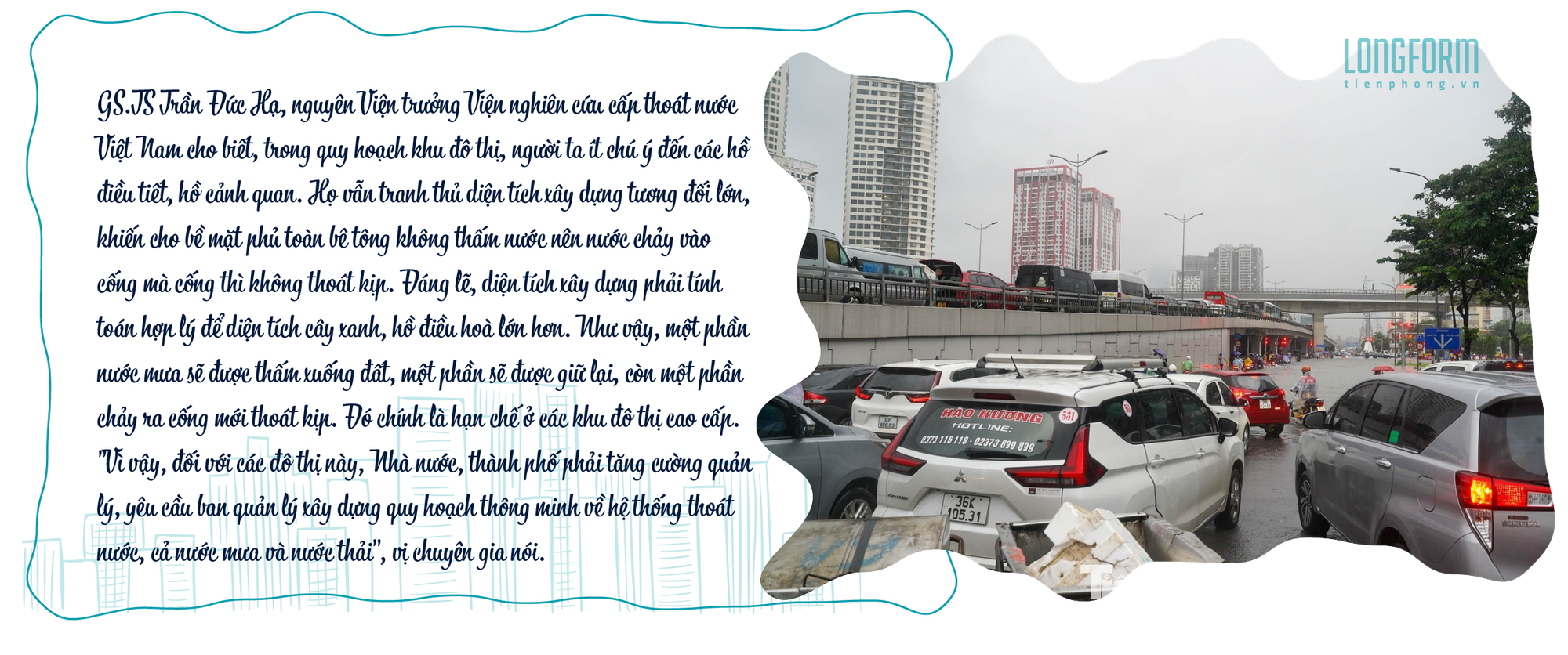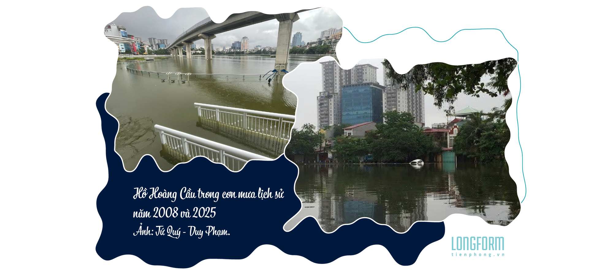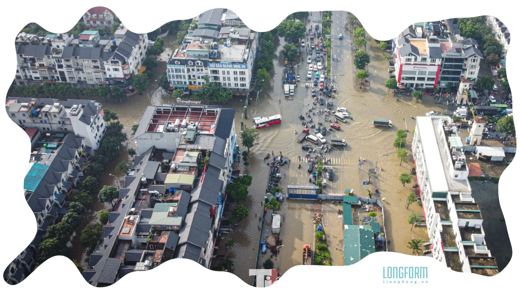 Cùng lúc đó, tốc độ đô thị hóa nhanh khiến đất thấm nước bị thu hẹp, bê tông hóa lan đến từng ngõ nhỏ. Những khu vực từng là đất trũng, ruộng tiêu nước – như Nhân Chính, Trung Hòa, Định Công – nay trở thành khu dân cư dày đặc, trung tâm thương mại, cao ốc.