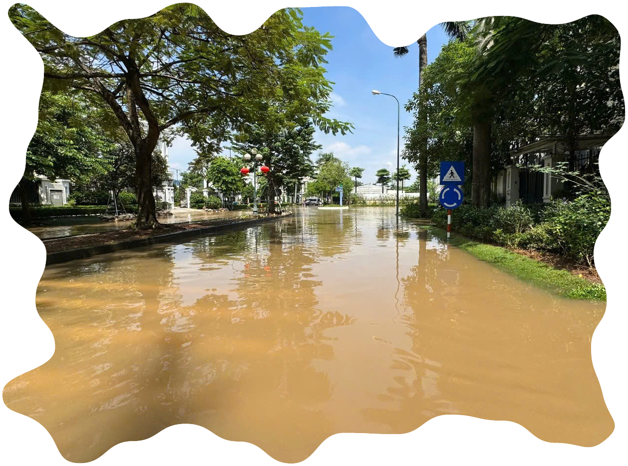 Không ít hộ dân ở Đại Mỗ, Tây Mỗ đã phải mua xuồng hơi, thuyền nhựa, chế bè để di chuyển. Nhiều đoạn đường thành “kênh nước”, hàng quán đóng cửa, rác trôi nổi khắp nơi. Trong khi đó, ở khu đô thị liền kề – những dãy biệt thự hàng chục tỷ đồng – nước cũng lênh láng đến bậc cửa.