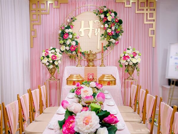 Hôn lễ chính phải được cử hành trước bàn thờ tổ tiên và phải có đầy đủ hương – hoa – đăng – trà – quả – thực, để có thể nhận được ân phước của tổ tiên ban cho cô dâu, chú rể.