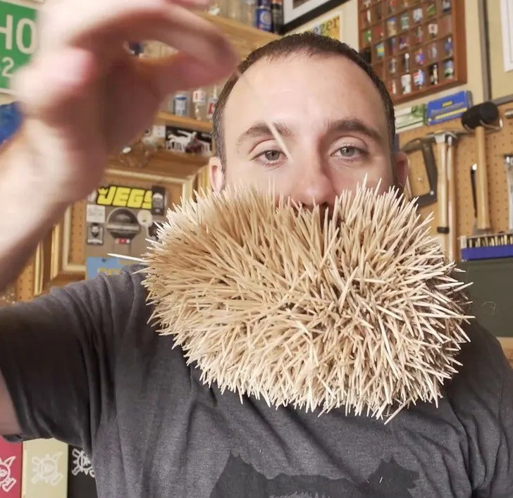 Vào năm 2018, Joel Strasser đã lập kỷ lục khi thành công đặt 3.500 chiếc tăm vào trong bộ râu của mình trong khoảng thời gian 3 giờ 13 phút. Ảnh: East News.