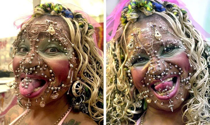 Elaine Davidson xỏ khuyên lần đầu tiên vào tháng 1/1997. Tính đến ngày 8/6/2006, cô đã xỏ tổng cộng 4.225 lần. Theo đó, cô trở thành người phụ nữ xỏ nhiều khuyên nhất thế giới. Ảnh: East News.