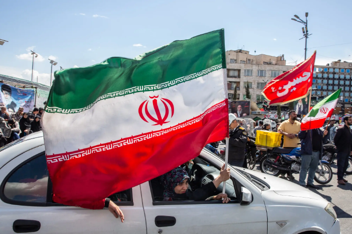 Người dân vẫy cờ Iran ở Tehran ăn mừng lệnh ngừng bắn với Mỹ. Ảnh: New York Times.
