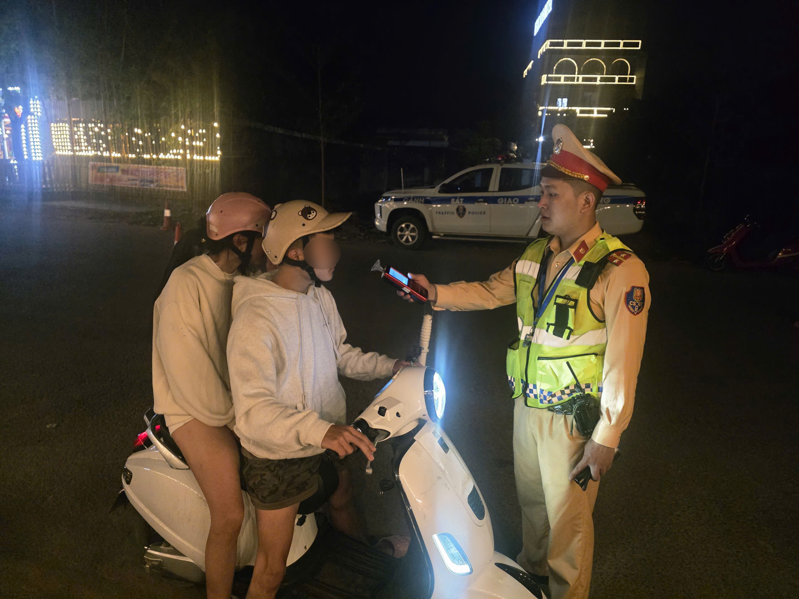Một trường hợp vi phạm được phát hiện là chị D.H.G điều khiển xe máy điện không đội mũ bảo hiểm. Lực lượng chức năng đã lập biên bản xử phạt và tuyên truyền về nguy cơ mất an toàn khi tham gia giao thông ban đêm.