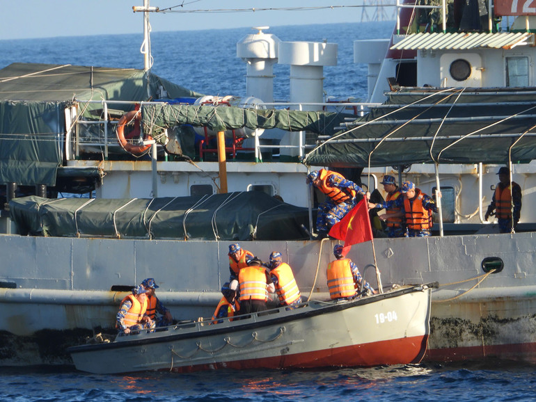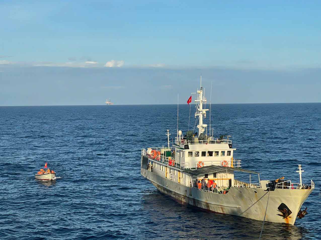 Đại úy Nguyễn Thành Trung, Thuyền trưởng tàu Trường Sa 04, cho biết thời tiết thuận lợi, tạo điều kiện cho việc đưa đón, cập mạn giữa các tàu diễn ra an toàn.