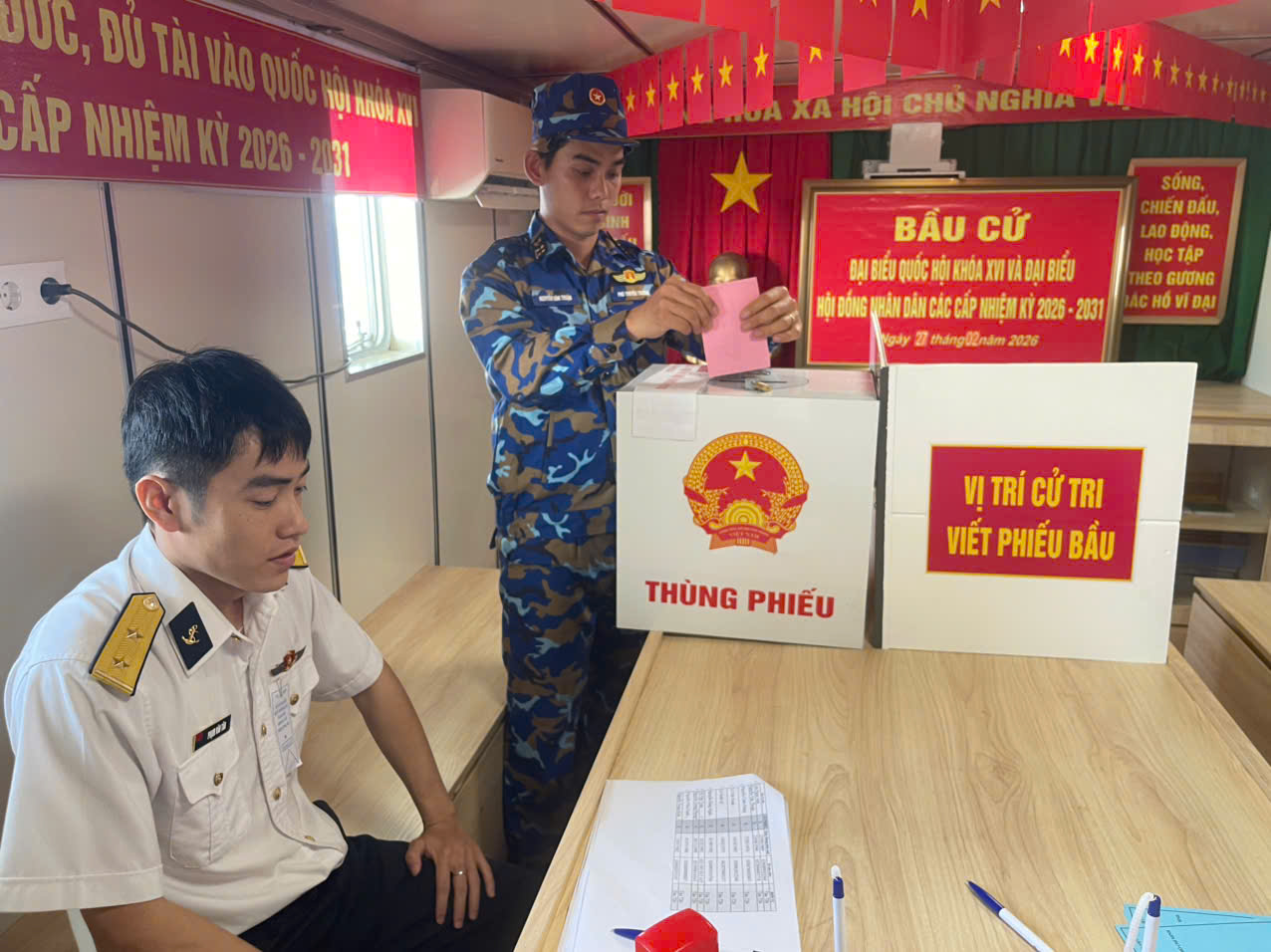 Trước đó, sáng 26-2, tàu Trường Sa 04 và tàu Trường Sa 21 (Lữ đoàn 125, Bộ Tư lệnh Vùng 2 Hải quân) rời cảng Long Sơn (TPHCM), mang theo thẻ cử tri, phiếu bầu, hòm phiếu và các tài liệu liên quan để tổ chức bầu cử cho cán bộ, chiến sĩ và ngư dân làm nhiệm vụ dài ngày trên biển.