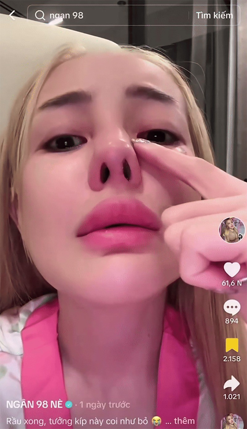 Hình ảnh Ngân 98 sau khi phẫu thuật thẩm mỹ lỗi.