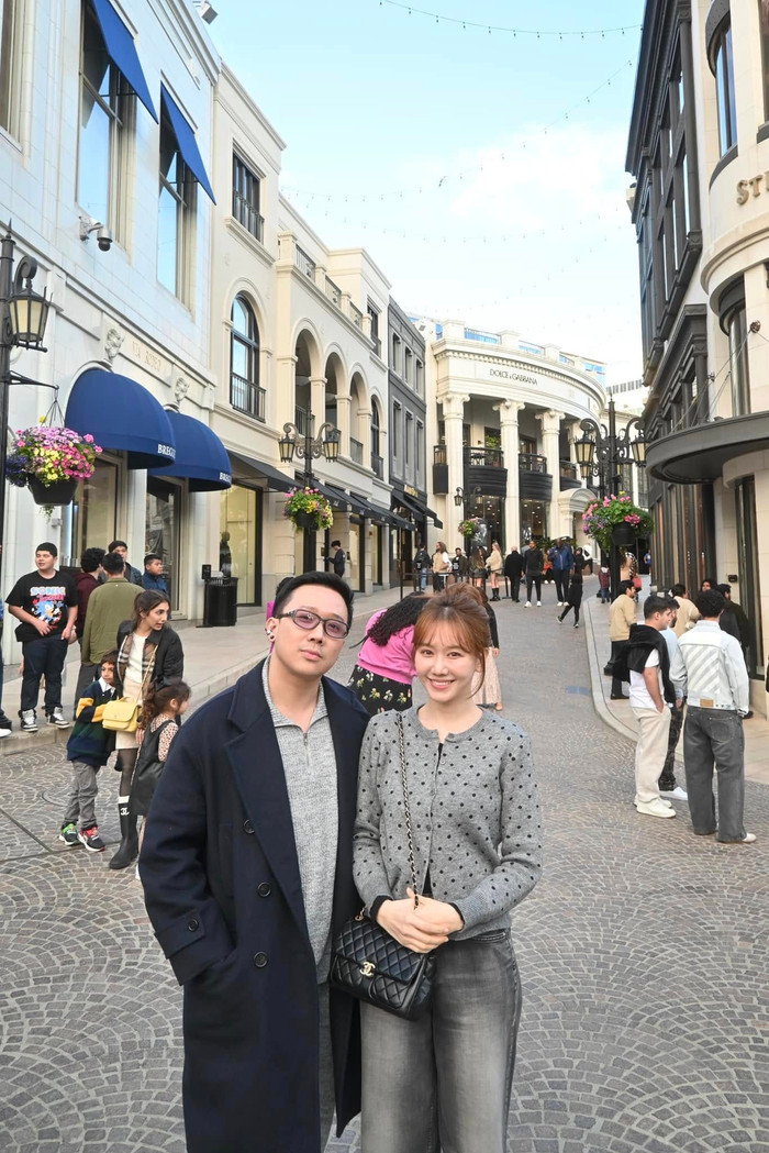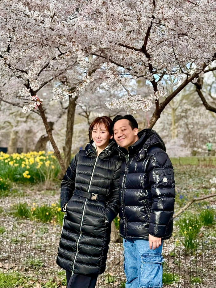 Ngay cả khi diện đồ không hoàn toàn giống nhau, sự đồng điệu vẫn được thể hiện qua tông màu và phụ kiện. Trong một chuyến du lịch nước ngoài, Trấn Thành chọn áo khoác xanh Navy và áo len xám, Hari Won chọn áo cardigan xám chấm bi và quần jeans xám. Sự kết hợp này mang lại cảm giác ấm áp, thoải mái và đồng bộ nhờ vào sự hòa quyện của các tông màu trung tính. Ảnh: FBNV