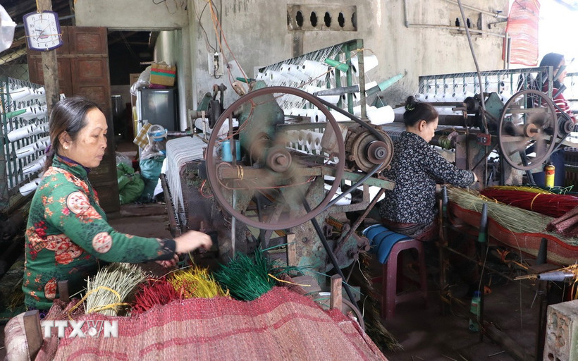 Người dân hối hả sản xuất vụ Tết tại “thủ phủ” chiếu cói Thu Xà. (Ảnh: Đinh Hương/TTXVN)