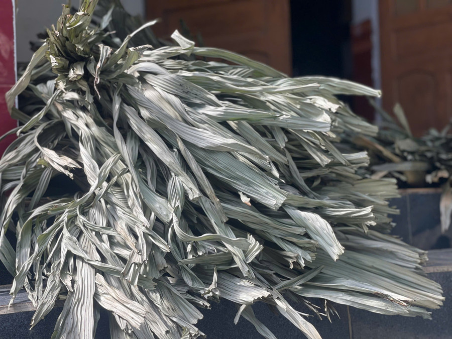 Mỗi chiếc áo tơi cần khoảng 180–200 tàu lá cọ, được xếp và chằm thủ công bằng dây mây hoặc giang.