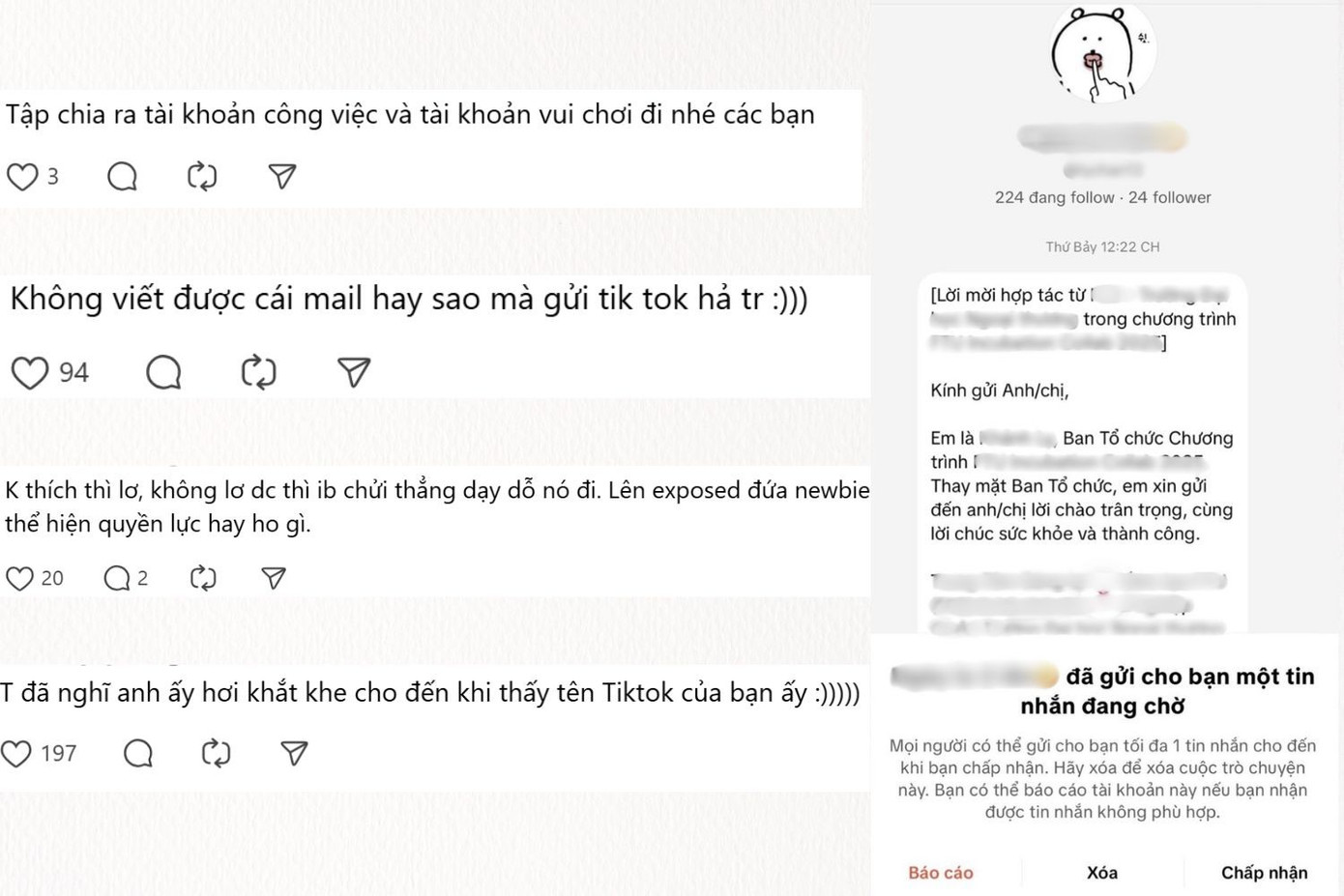 Câu chuyện một gửi lời mời hợp tác qua TikTok với cái tên tài khoản thô tục, suồng sã đang thu hút cuộc tranh luận trên Threads. Bên cạnh việc chọn sai kênh liên lạc thì cách đặt vấn đề, liệt kê "quyền lợi và nghĩa vụ" cứng nhắc đối với khách mời trong khi đang ở tâm thế "nhờ vả" cũng khiến người nhận khó chấp nhận.