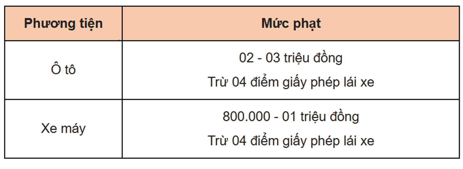 Các mức phạt nồng độ cồn.
