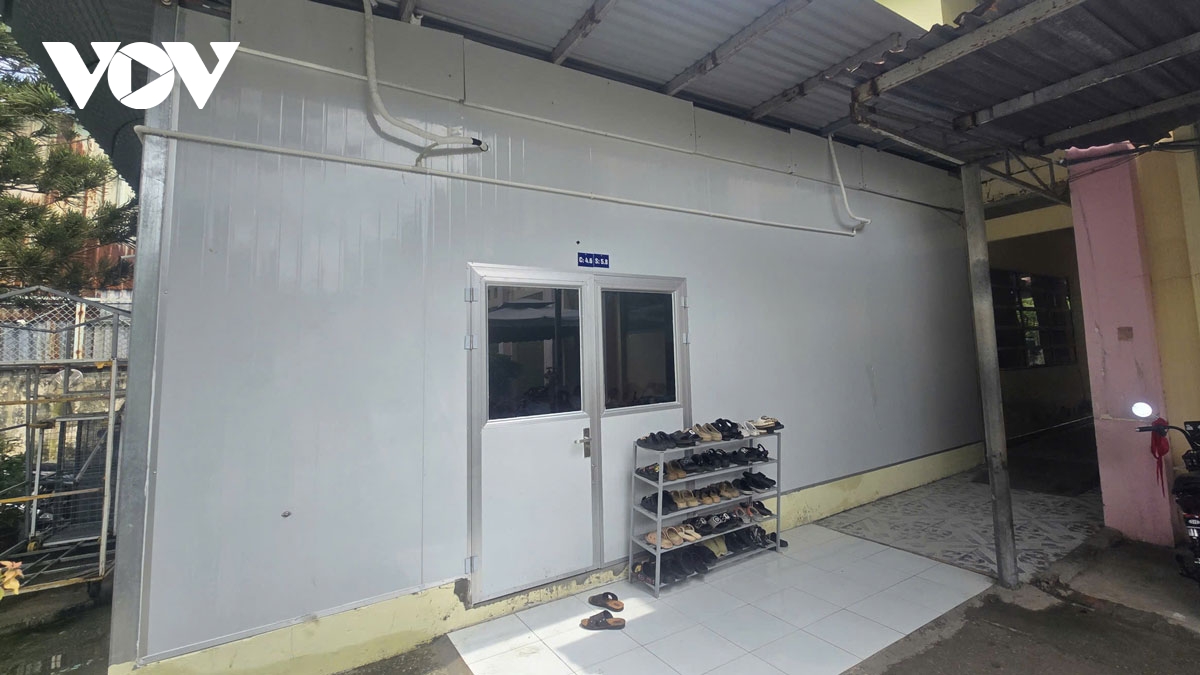 Đối với các phòng học bằng tôn, nhà trường đã vận động gắn máy lạnh để các em không bị nắng nóng. Tuy nhiên, về bàn ghế, nhà trường vẫn chưa thể đầu tư theo đúng quy định, do đó học sinh vẫn phải ngồi trên ghế nhựa.