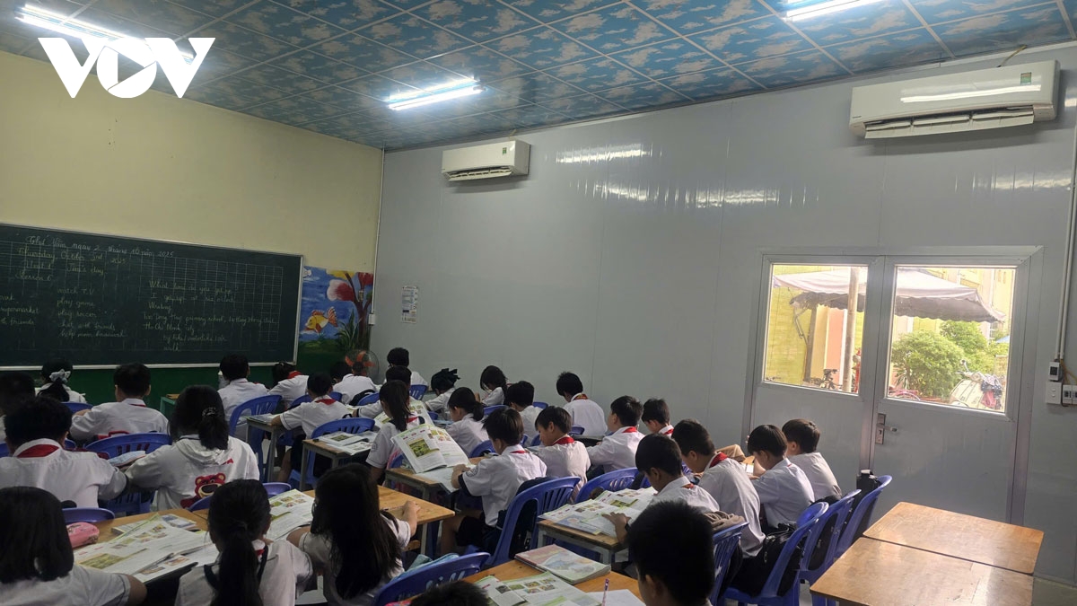 Lớp học tạm tại Trường Tiểu học Tân Đông Hiệp A được lắp máy lạnh