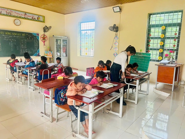 Các lớp học ở xã miền núi Trường Sơn đã khang trang hơn.