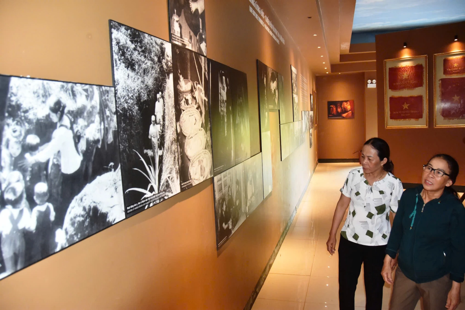Bà Hồ Thị Giữ (bên trái) và bà Hồ Thị Hường trở lại ký ức địa đạo Vịnh Mốc - Ảnh: B.C