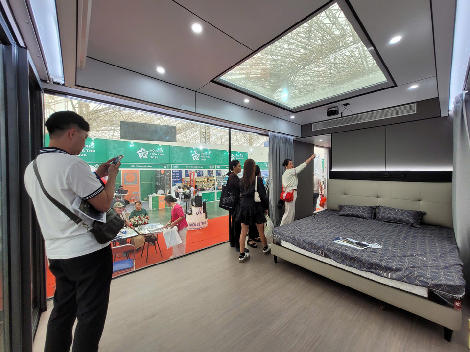 Theo đại diện công ty, nhà gồm một phòng khách, một phòng ngủ, một nhà vệ sinh và một ban công. Nhà rộng 3,3m dài 11,5m và cao 3,3m, tổng diện tích 38m², có sẵn các kết nối đường điện và đường nước. (Ảnh: Minh Anh/Vietnam+)