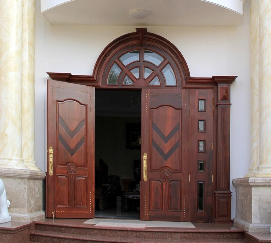 Với ưu điểm cân đối, sang trọng và tiện dụng, cửa gỗ 2 cánh là lựa chọn phổ biến cho biệt thự. Thiết kế 2 cánh giúp cửa mở rộng, đón sáng và gió tối ưu.