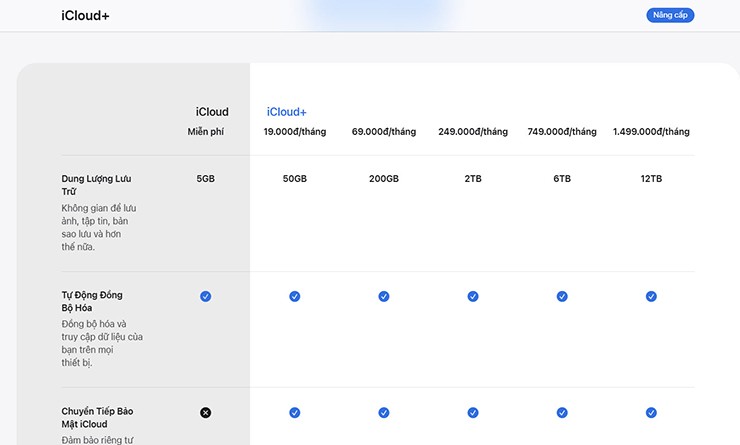 Apple cung cấp các lựa chọn mức giá khác nhau khi muốn mở rộng không gian lưu trữ với iCloud.