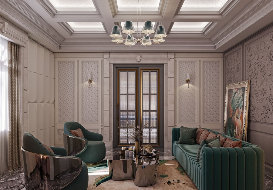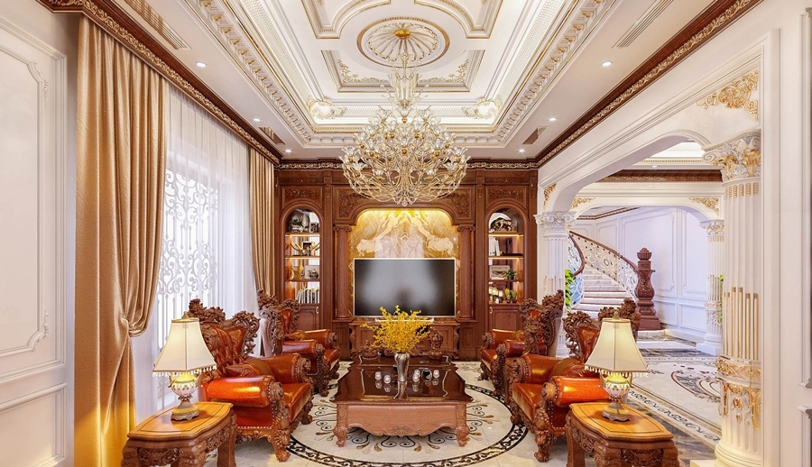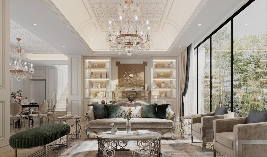 Mọi chi tiết trong không gian đều được tính toán kỹ lưỡng nhằm đảm bảo sự rộng rãi, thông thoáng, đồng thời tôn lên đẳng cấp đặc trưng của phong cách tân cổ điển.