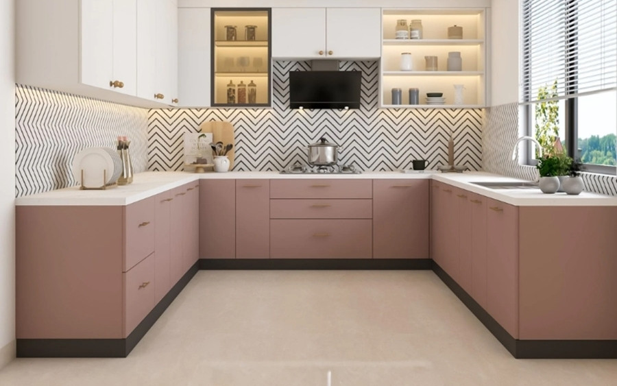Tủ bếp chữ U thường sử dụng trong các không gian có diện tích rộng. Thiết kế bao quanh 3 mặt giúp tận dụng tối đa diện tích, tạo không gian khép kín.