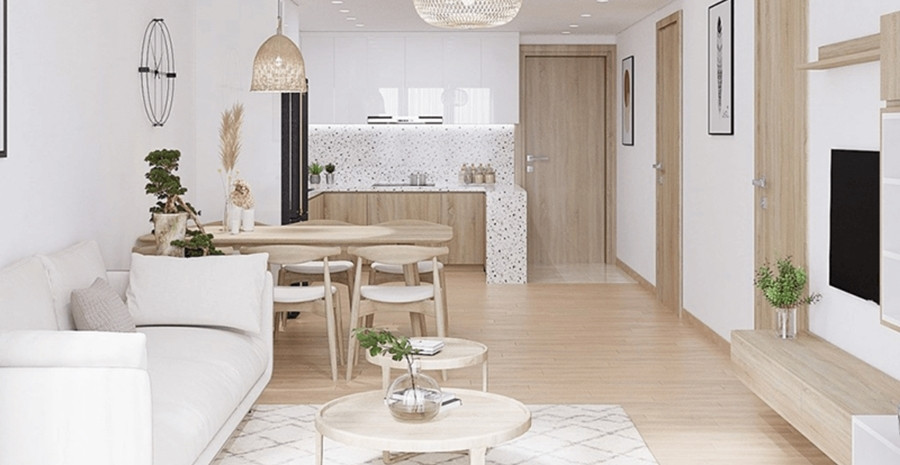 Không ít căn hộ chung cư thiết kế bếp liền phòng khách nhằm tạo cảm giác thông thoáng và gắn kết giữa các thành viên trong gia đình.