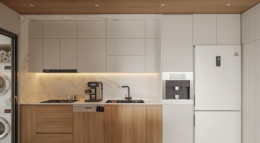 Thêm nữa, dù căn hộ nhỏ hay nhà phố, tủ bếp chữ I đều có thể linh hoạt thích ứng. Thiết kế đơn giản giúp tủ bếp chữ I dễ dàng lắp đặt ở nhiều vị trí khác nhau.