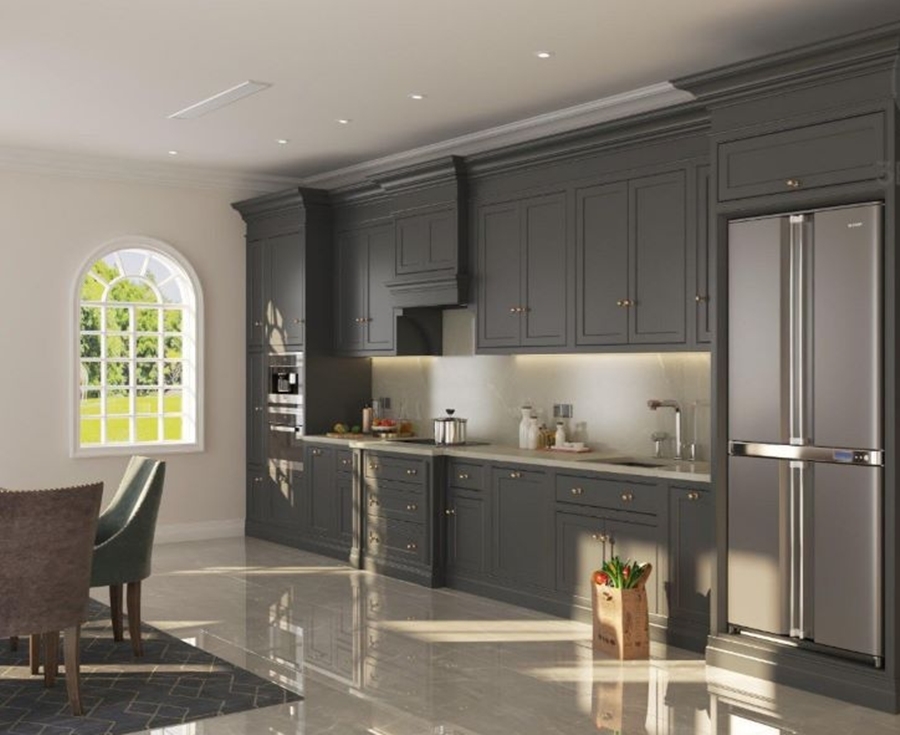 Kết hợp giữa nét truyền thống và hiện đại, tủ bếp chữ I phong cách tân cổ điển mang đến sự thanh lịch, sang trọng. Với phong cách này, các hoa văn tân cổ điển được đơn giản hóa nhằm mang đến sự nhẹ nhàng, tinh tế.